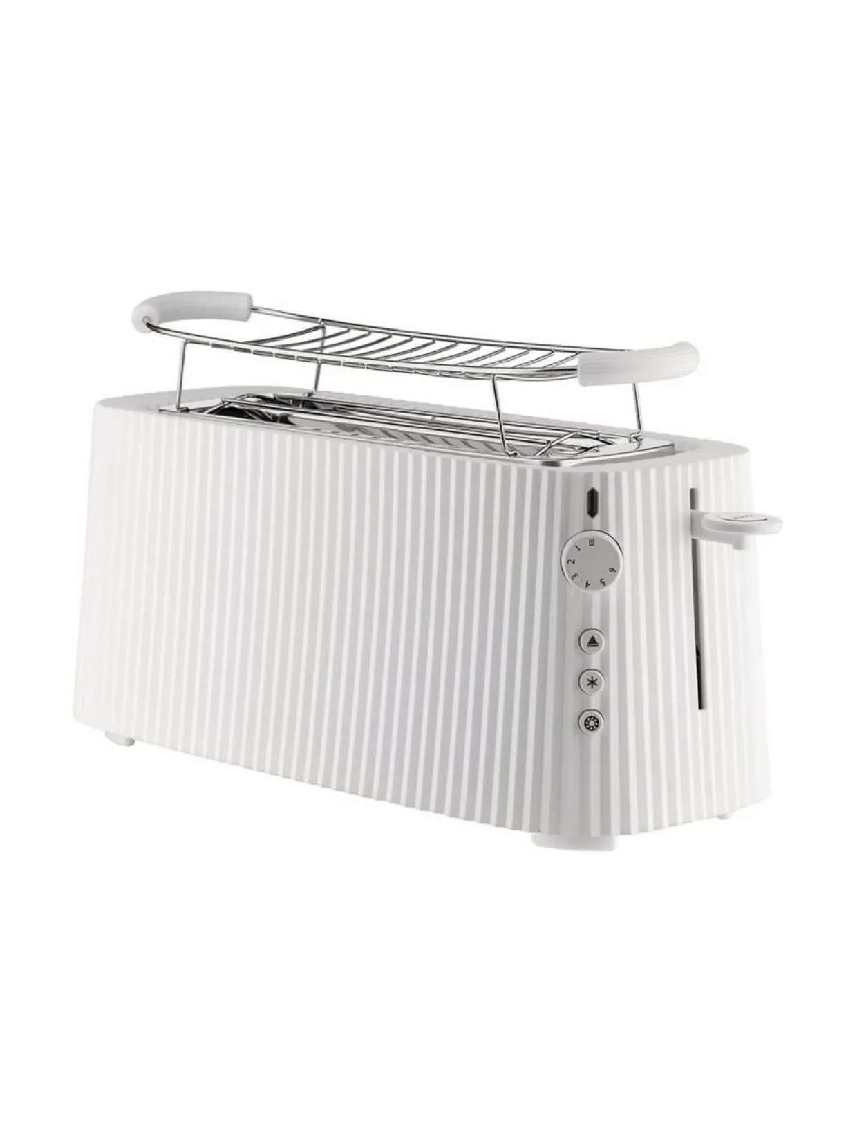Alessin Plissé-leivänpaahtimen muotokieleen on haettu inspiraatiota muotimaailmasta ja arkkitehtuurista. Michele De Lucchin suunnittelema leivänpaahdin toimii mainiosti myös sisustuselementtinä. Voit valita leivän paahtoasteen kuudesta eri vaihtoehdosta. Leivänpaahtimessa on myös sulatustoiminto jäiselle leivälle sekä uudelleenlämmitystoiminto, joka lämmittää jäähtyneen leipäpalan haluttuun lämpötilaan 30 sekunnissa. Irrotettava murualusta tekee paahtimen puhdistamisesta helppoa, ja liukumaton pohja takaa, että laite pysyy käytön ajan tukevasti paikallaan.