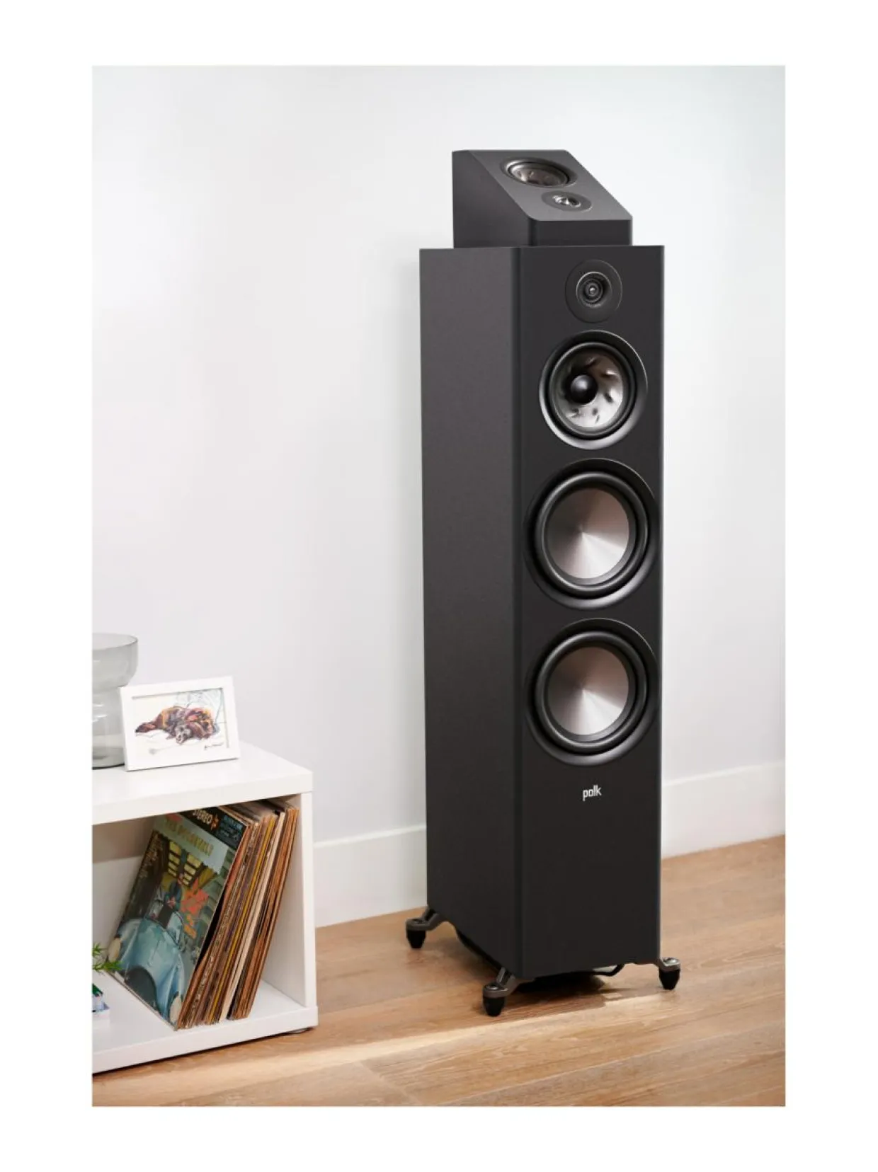 Polk R900 on täydellinen ratkaisu, kun haluat nauttia esimerkiksi Dolby Atmos -ääniraidoista upealla tilantunnulla, mutta et voi tai halua asentaa kaiuttimia kattoon. R900 istuu täydellisesti Polkin useimpien R-sarjan kaiuttimien päälle, mutta voit asentaa sen myös seinälle.