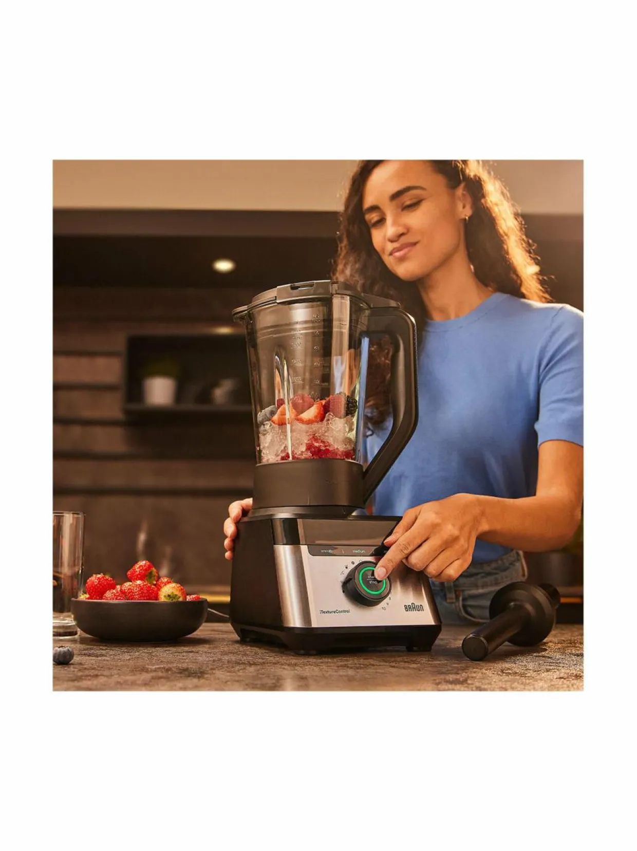 Braun Power Blend 7 tehosekoittimen ohjauspaneeli on helppo käyttää ja laitteessa on suoravalintaiset sekoitusohjelmat smoothieita, pilkkomista ja jäänmurskaamista varten. iTextureControl -teknologia tarjoaa käyttösi kolme rakenneasetusta varmistaen täydellisen sekoitustuloksen ja PrecisionCrush -leikkuuterä murskaa vaivatta kovimmatkin ainekset varmistaen, että kaikki silkkisistä smoothieista, sosekeittioihin, dippeihin tai tahnoihin ovat täydellisiä.