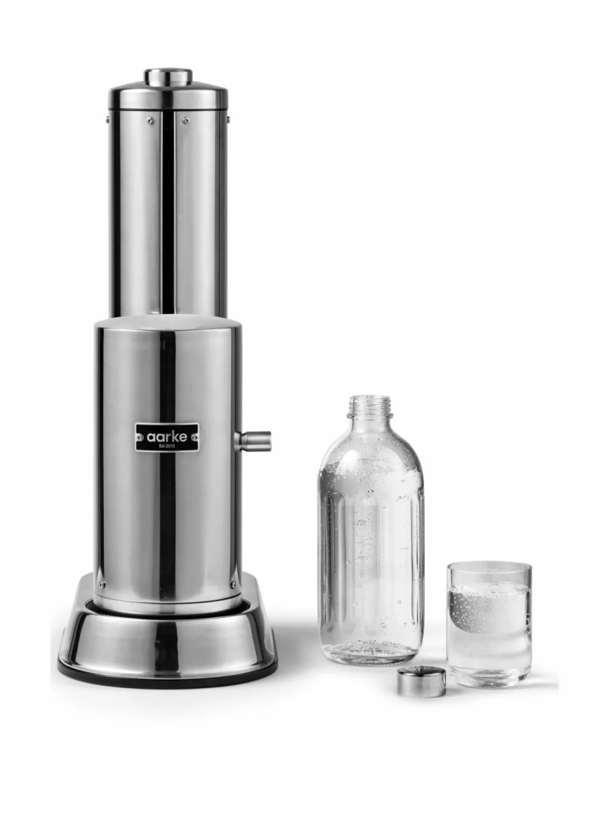 Aarke Pro on edistyksellinen ja helppokäyttöinen hiilihapotuslaite. Nyt innovatiivisen Push-to-Lock™-ratkaisun ansiosta hiilihapotusprosessia voidaan hallita yhdellä kädellä. Aseta pullo ensin paikalleen, laske kansi ja paina hiilihapotuspainiketta. Kun vesi on hiilihapotettu, teräskotelo nousee ylös ja voit nauttia ihanasta kuplivasta vedestä.
