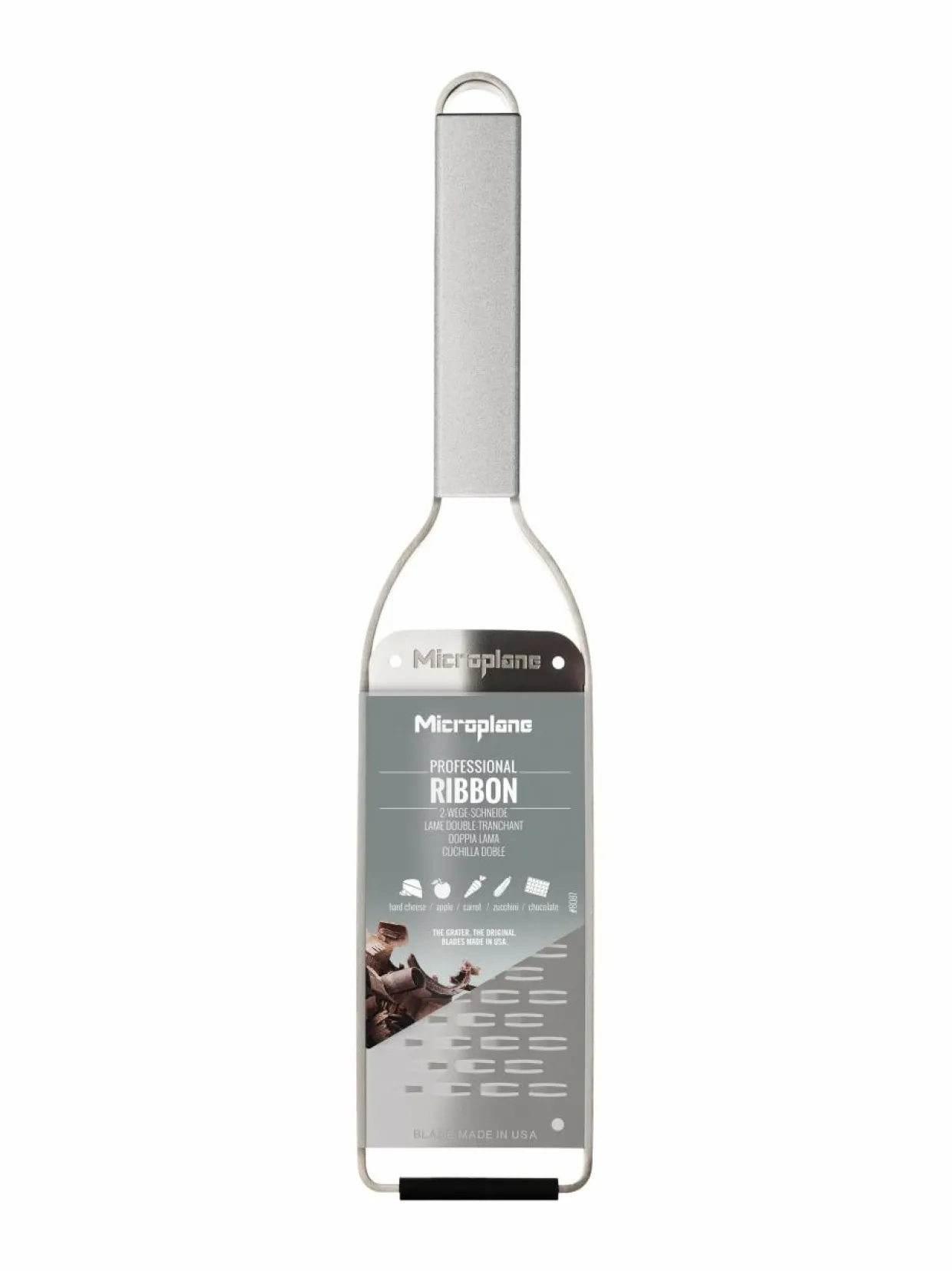 Microplane-merkin Professional Series Ribbon -raastin on suunniteltu luomaan kauniita nauhoja juustosta, suklaasta, kurkusta ja muista aineksista. Raastin on valmistettu teräksestä ja siinä on pitkä, ohut terä, joka leikkaa ainekset tasaisesti ja nopeasti. Raastin on helppokäyttöinen ja siinä on mukava kahva, joka tekee raastamisesta miellyttävää. Raastin on myös helppo puhdistaa. Sen mitat ovat 30 x 6,8 x 1,5 cm. Terä on valmistettu Yhdysvalloissa.