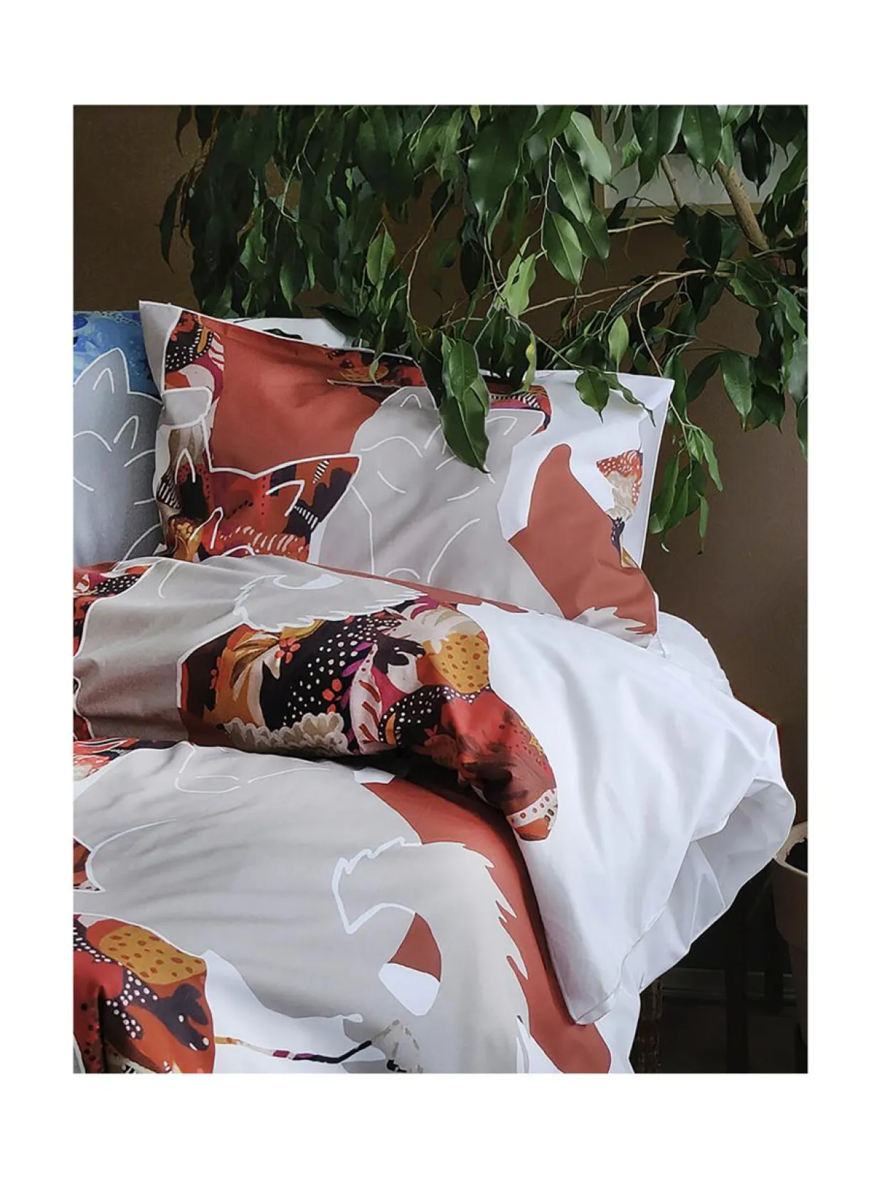 Koira-aiheinen pussilakanasetti ’Naamiaiset’ on ihastuttavan hyväntuulinen. Suomessa valmistettu pussilakanasetti koiramaisine kuvioaiheineen kertoo niistä voimauttavista hetkistä, joita karvakaverin kanssa voi viettää – oli se sitten koira, kissa tai joku muu. Kotimaiset lakanat pedattuna sänkyyn ja käpertyminen karvakaverin (tai tässä tapauksessa lukuisten karvakavereiden) hännän mutkaan nukkumaan, täydellistä! Naamiaisten pussilakanasetit ovat perkaalipuuvillaisia, mikä tarkoittaa, että ihotuntuma on todella ihana. Naamiaiset-pussilakanasettejä on saatavilla sekä raikkaan ja viileän sinisävyisenä sekä lämpimän ja maanläheisen terranvärisenä.