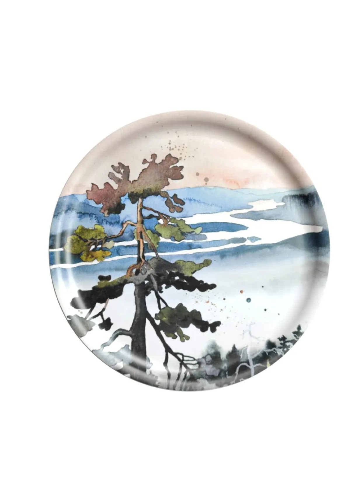 Tarjotin on valmistettu Suomessa. Maalaus ja design ovat rovaniemeläisen taiteilija-yrittäjä Elisa Ahosen käsialaa. Kuva esittää maisemaa Kuninkaanlaavulta Ounasjoelle.Tuotenumero1458708 Materiaalipinnoitettu koivuviilu Hoito-ohjeetTarjotin kestää erittäin hyvin käsinpesua altaassa, mutta älä jätä sitä likoamaan tuntikausiksi, ettei puumateriaali ime itseensä kovin runsaasti vettä. PesuohjeetKäsinpesu Kokohalkaisija 35 cm Avainsanattarjotin, kattaus, alusta, tarjoilualusta, tarjoilu, sisustus, kotimainen, luontoaihe