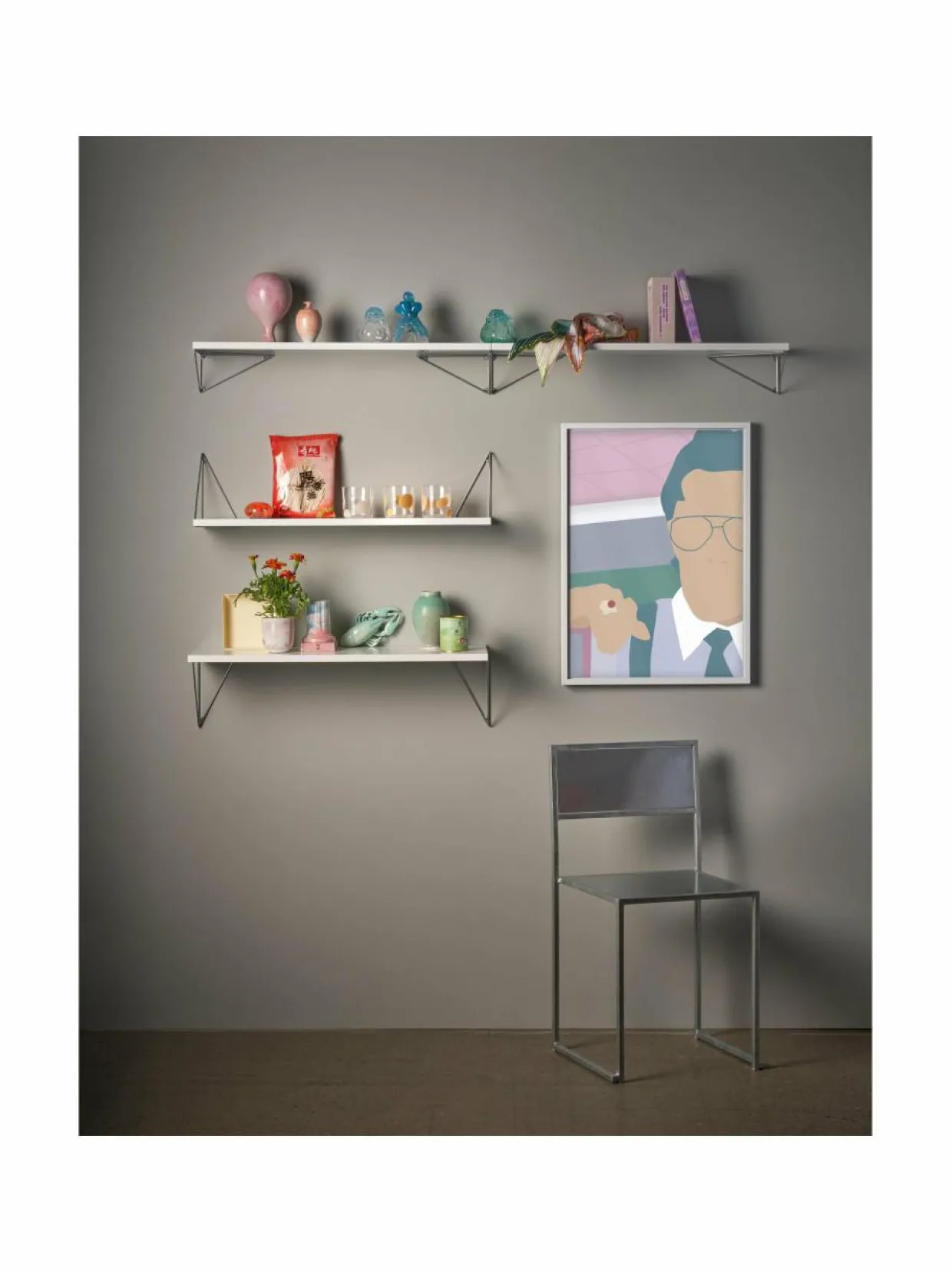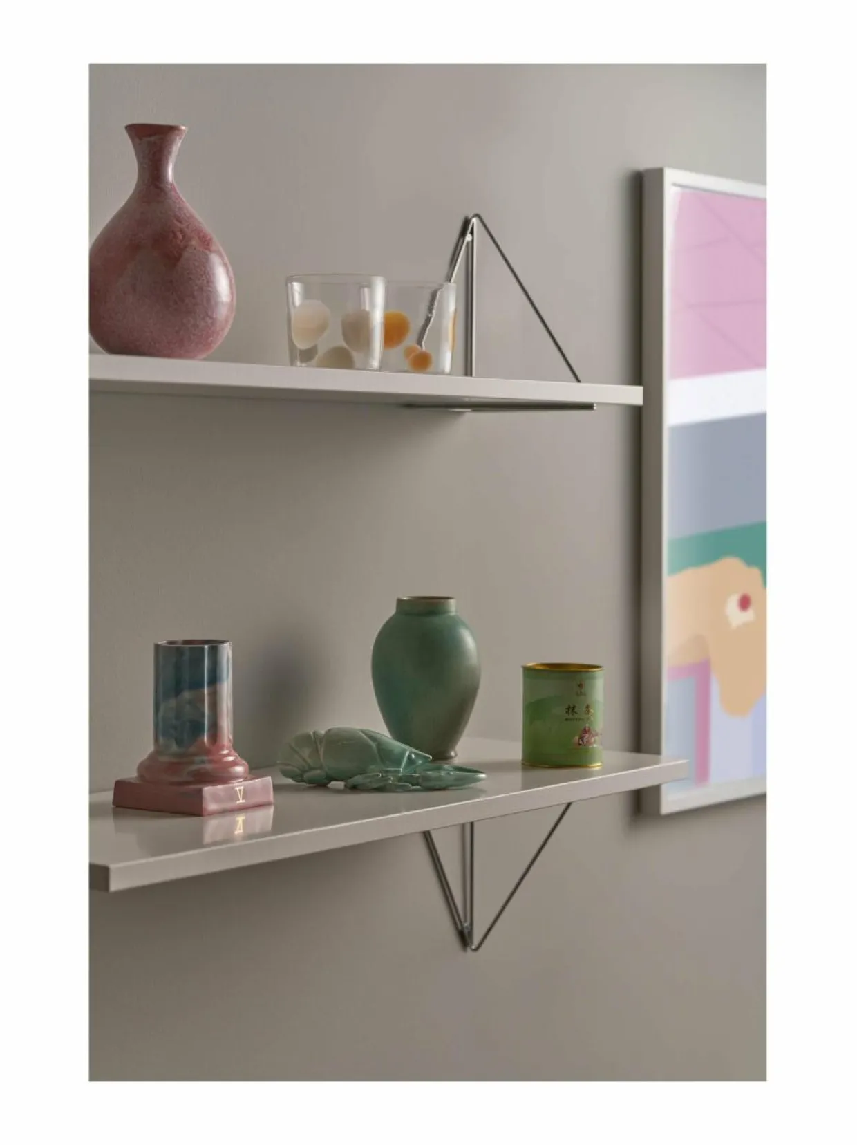 Ruotsalaisen Mazen Pythagoras-sarja sisältää seinähyllyjä, kiinnikkeitä ja paljon muuta. Kokoa kokonainen hyllyjärjestelmä tai laita seinälle yksi hylly, johon asetat esille rakkaimmat muistosi. Voit valita eri väreistä, määrästä ja kulmista – Pythagoras-sarja sisältää loputtoman määrän vaihtoehtoja.