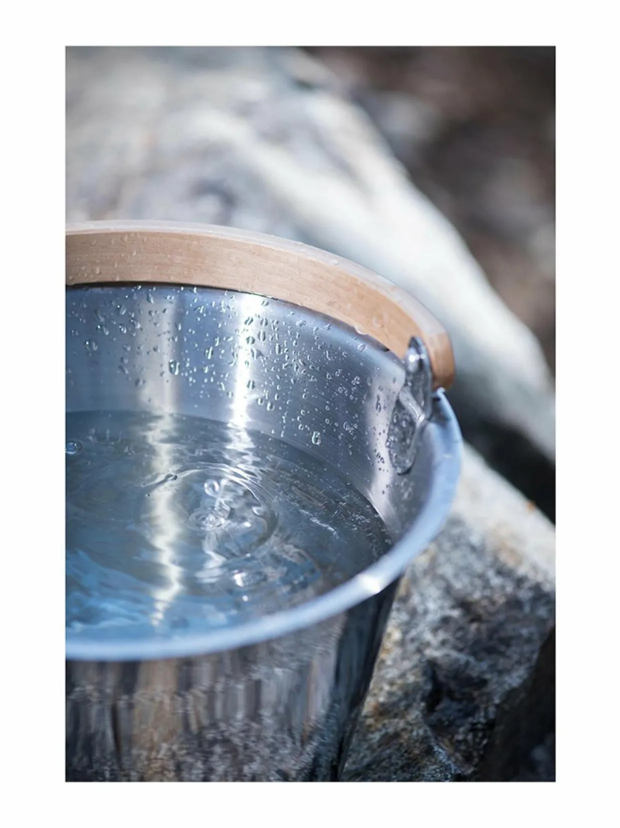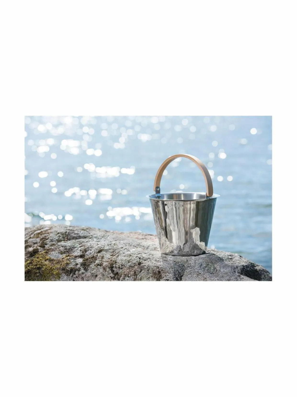 Rento x Harri Koskinen -yhteistyömalliston tyylikkään pelkistetty muotokieli noudattelee sekä suunnittelijalle että Rento-tuotteille tyypillistä skandinaavista muotoiluestetiikkaa. Harri Koskisen suunnittelema saunasanko on valmistettu kiiltävästä teräksestä. Kahva on koivua.