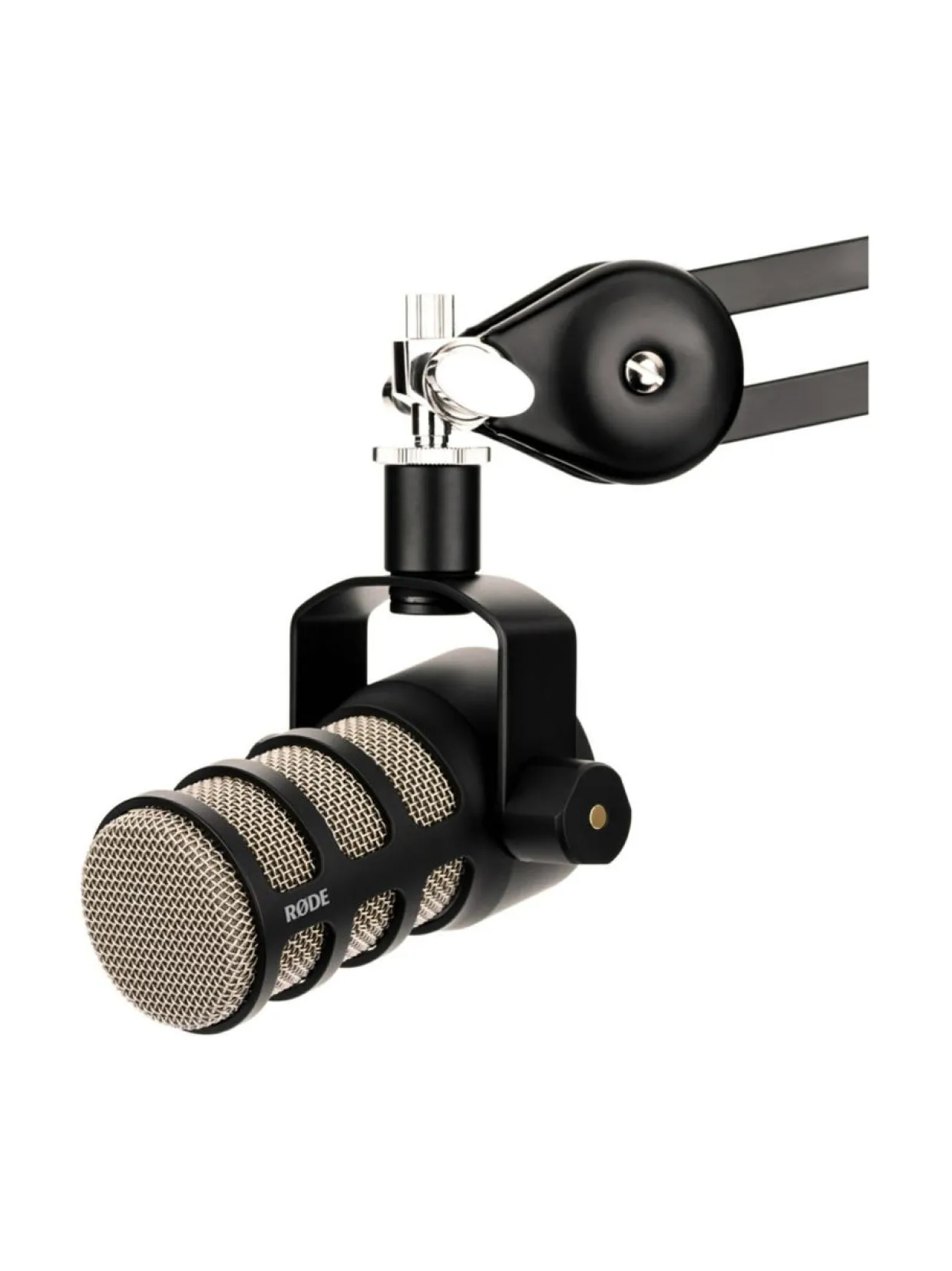 Mikrofonissa on mukana kiinnitin, jolla sen saa kiinni vaikkapa jalustaan tai Rode PSA1 -pöytätelineeseen.
