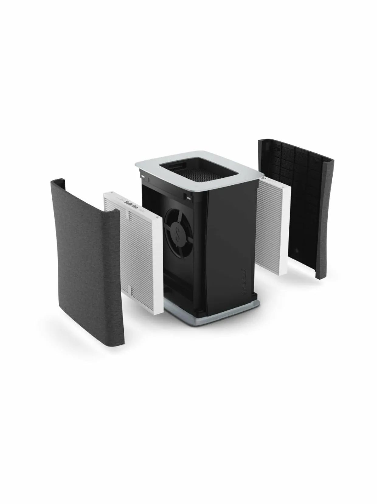 Ilmanpuhdistimen ytimessä on kaksi kaksoissuodatinta, jotka ovat yhdistelmä HEPA-suodatinta ja aktiivihiilisuodatinta. Erittäin tehokas H12 HEPA -suodatin poistaa epäpuhtaudet, kuten hienon pölyn, allergeenit, siitepölyn, virukset ja bakteerit ilmasta, kun taas aktiivihiilisuodatin poistaa kaasuja.