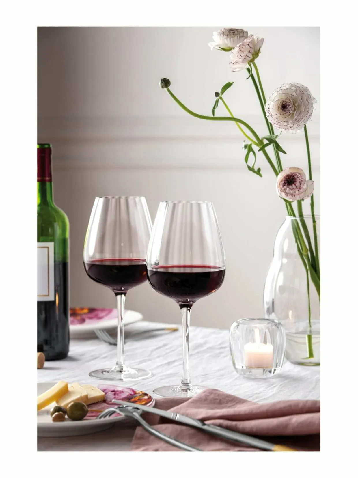 Rose Garden kristallilaseissa yhdistyvät visuaaliset linjat ja moderni muotoilu. Punaviinilasit voidaan pestä astiapesukoneessa.