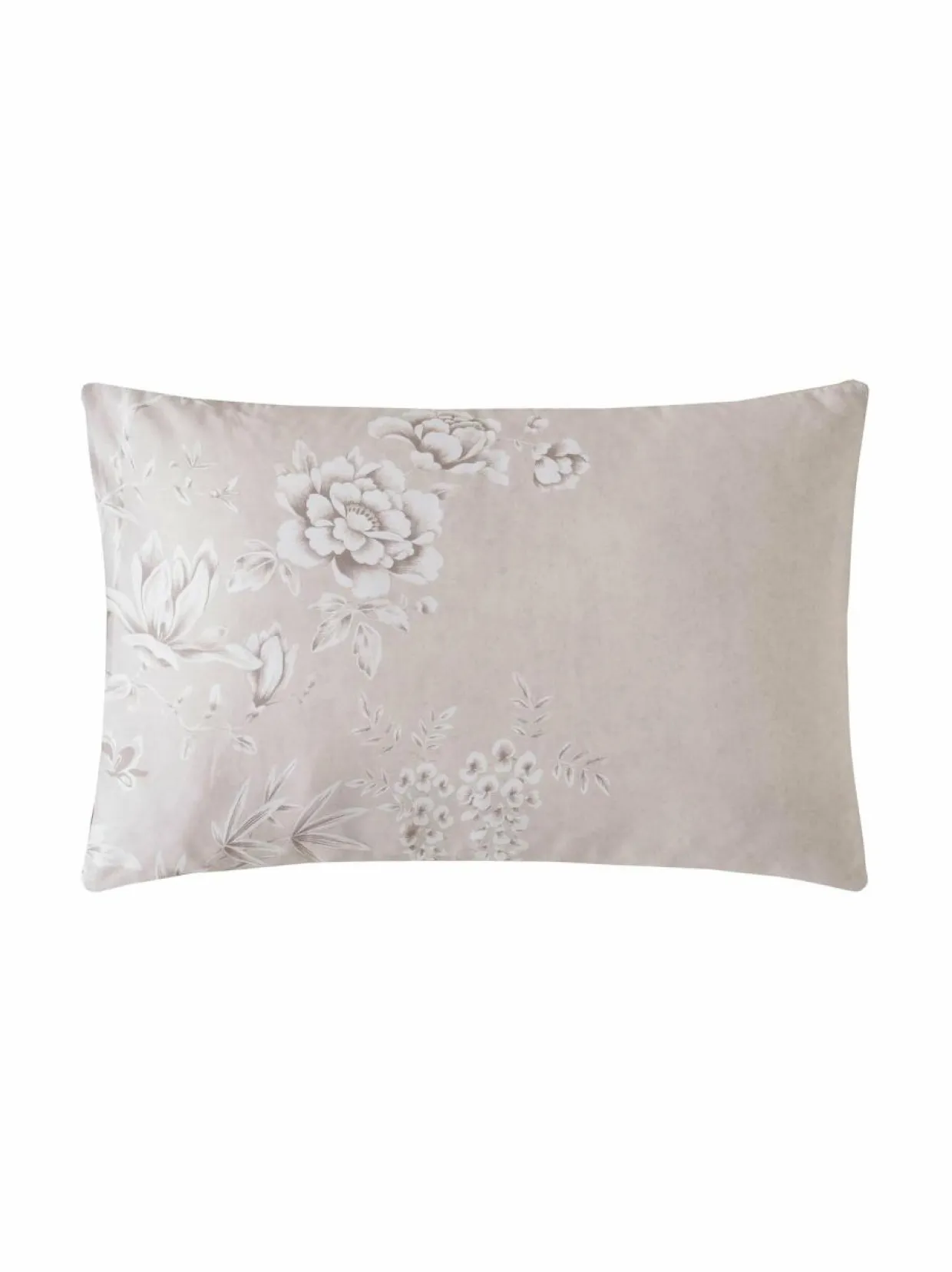 Laura Ashleyn elegantti tyynyliina hennossa kukkakuosissa. Satiinityynyliinan lankaluku on 220. Rowsham Garden -sarjasta on saatavilla myös pussilakanasetti.