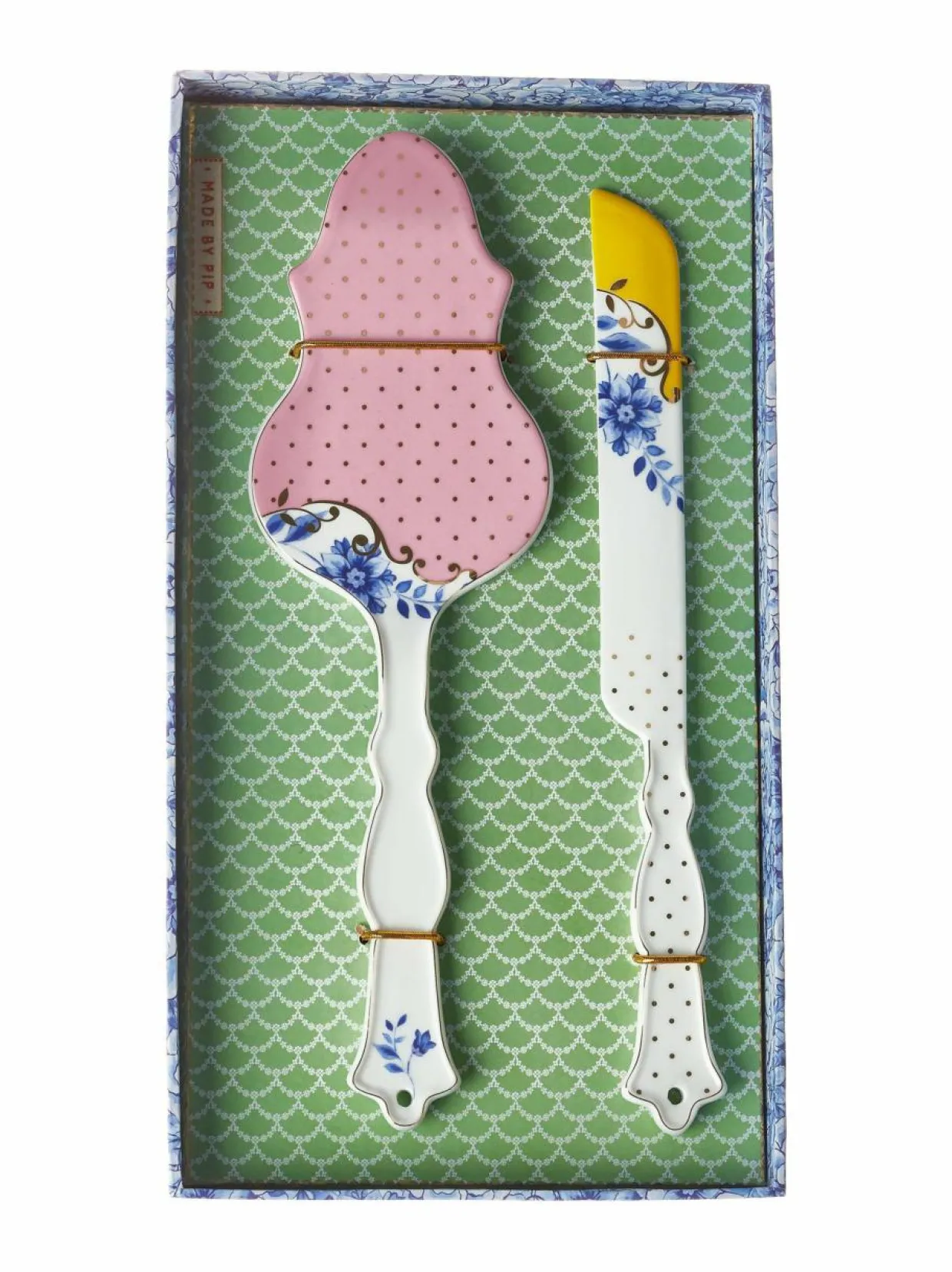 PiP Studion elegantit ja romanttiset Royal-posliiniastiat ovat täynnä elämäniloa. Pakkauksessa on kakkulapio ja -veitsi. Kuviointien vuoksi osat tulee pestä käsin. Astiat eivät kestä kuumennusta mikroaaltouunissa.