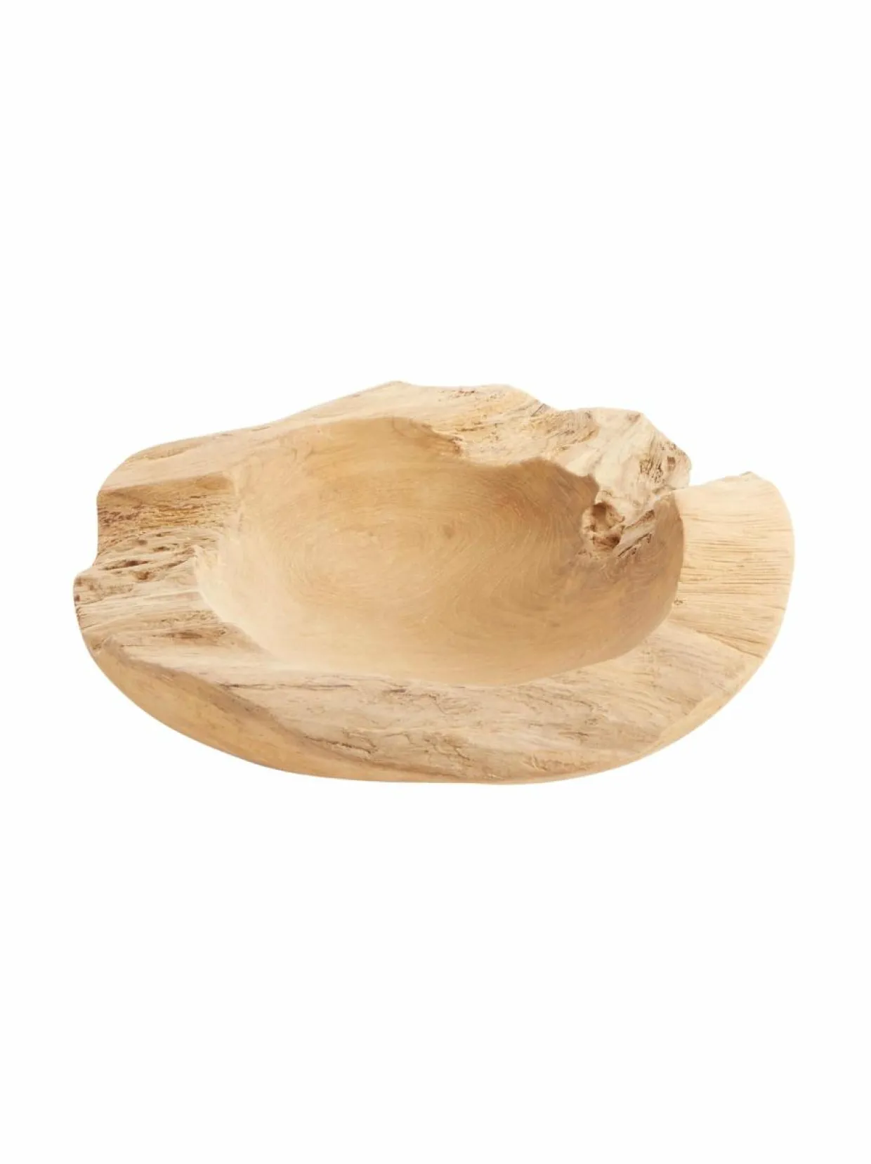 MUUBS Rustic 30 -kulho on ainutlaatuinen sisustuselementti, joka on valmistettu tiikkijuuresta. Kulhon rosoinen pinta ja luonnollinen muoto luovat sille ainutlaatuisen ilmeen. Iso kulho tuo ripauksen luonnonläheisyyttä mihin tahansa tilaan. Koska tuote on uniikki, sen koko, muoto ja väri voivat vaihdella hieman. Laita Rustic 30 -kulho koristeeksi lattialle tai pöydälle. Voit asettaa kulhoon esimerkiksi kynttilöitä, koristekiviä tai muita sisustuselementtejä. Kulho sopii täydellisesti myös hedelmien tai muiden pienten esineiden säilytykseen.