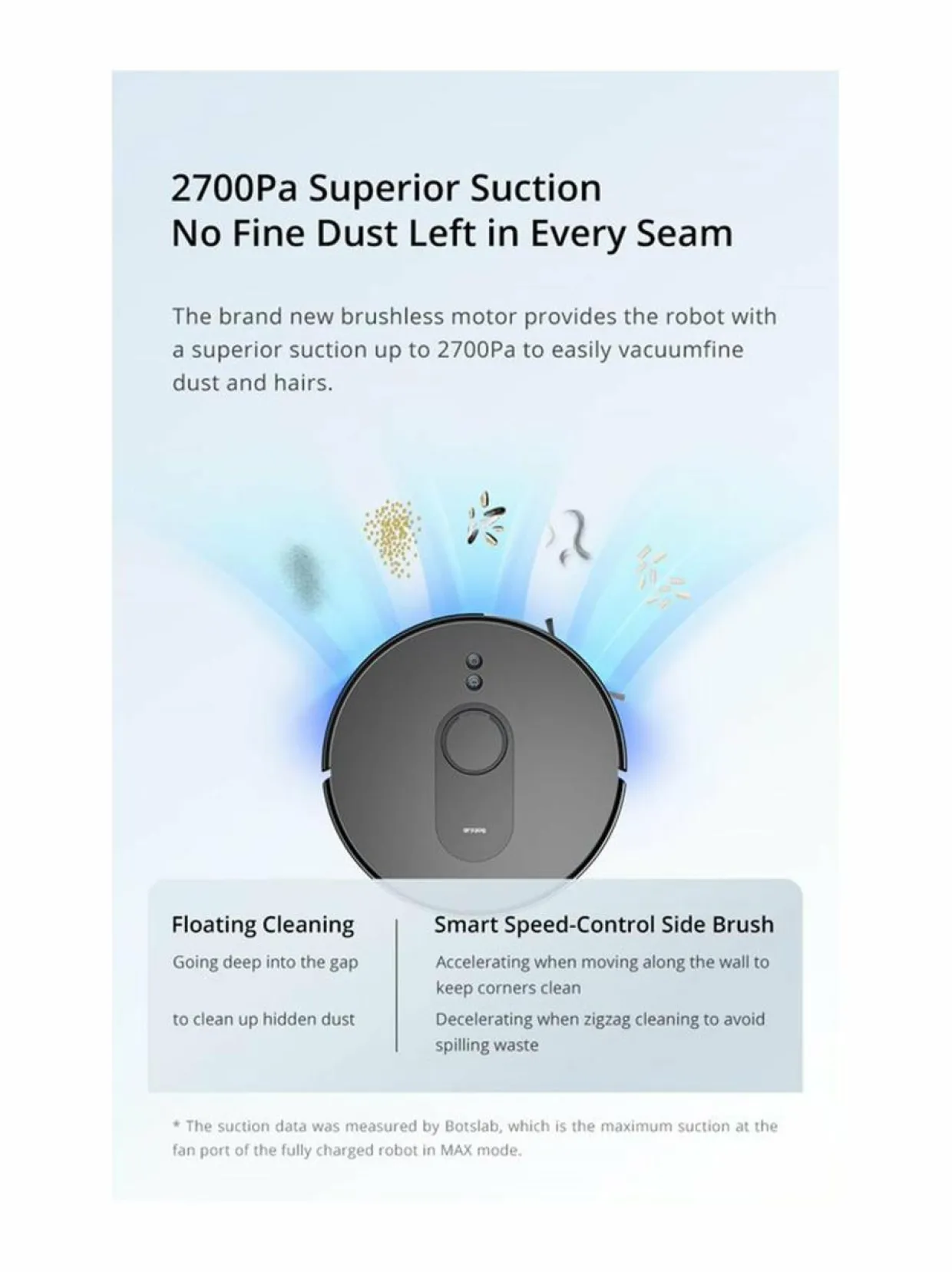 Sisäänrakennettujen 25 erilaisen LiDAR-, ultraääni- ja kosketusanturin avulla imuri osaa kartoittaa ympäristönsä poikkeuksellisen tarkasti ja liikkua itsenäisesti huoneiden ja esteiden mukaan. Robotti-imuri pystyy väistelemään esteitä pehmein kosketuksin ilman, että kaataisi kevyitäkään tavaroita.