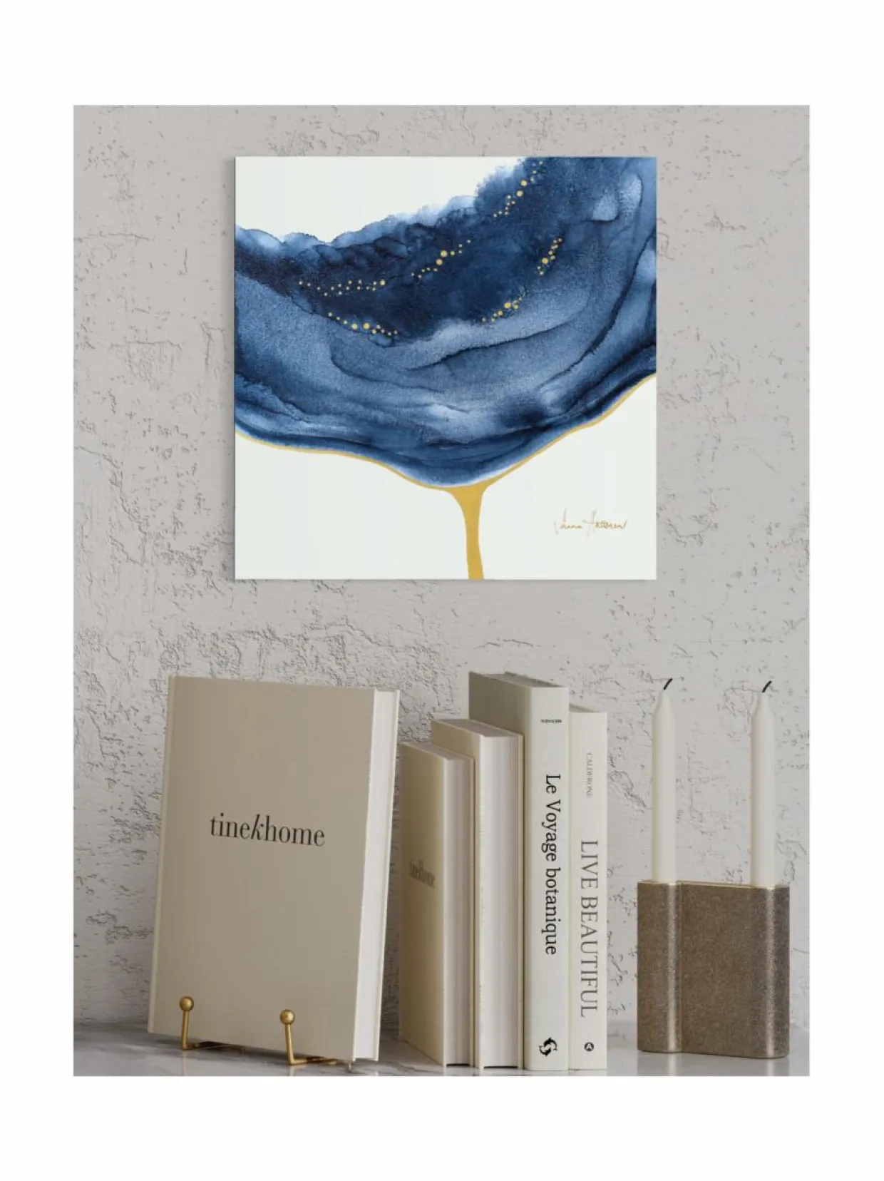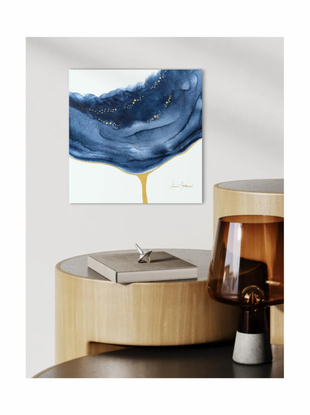 Teoksen koko on 30 x 30 x 4 cm. Pieni teoskoko sopii täydellisesti esimerkiksi senkin tai yöpöydän päälle, miksei myös pienemmälle seinälle.