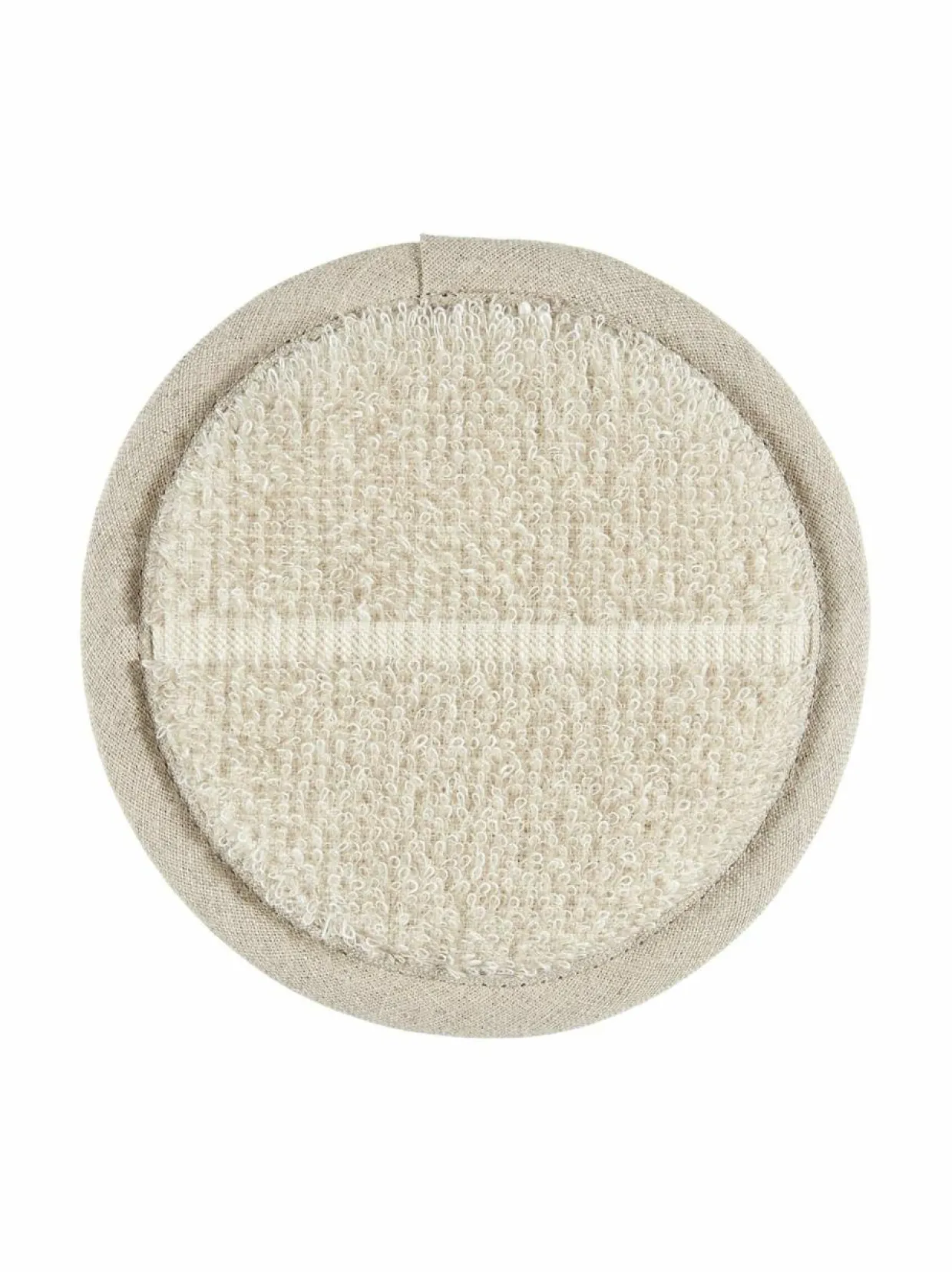 Pellavasekoitteesta valmistetussa pyöreässä pesusienessä on hiukan karhea pinta, joka sopii hyvin ihon kuorintaan ja kuivahierontaan. Pesusienen toisella puolella on nauha, jonka ansiosta sieni pysyy hyvin kädessä.