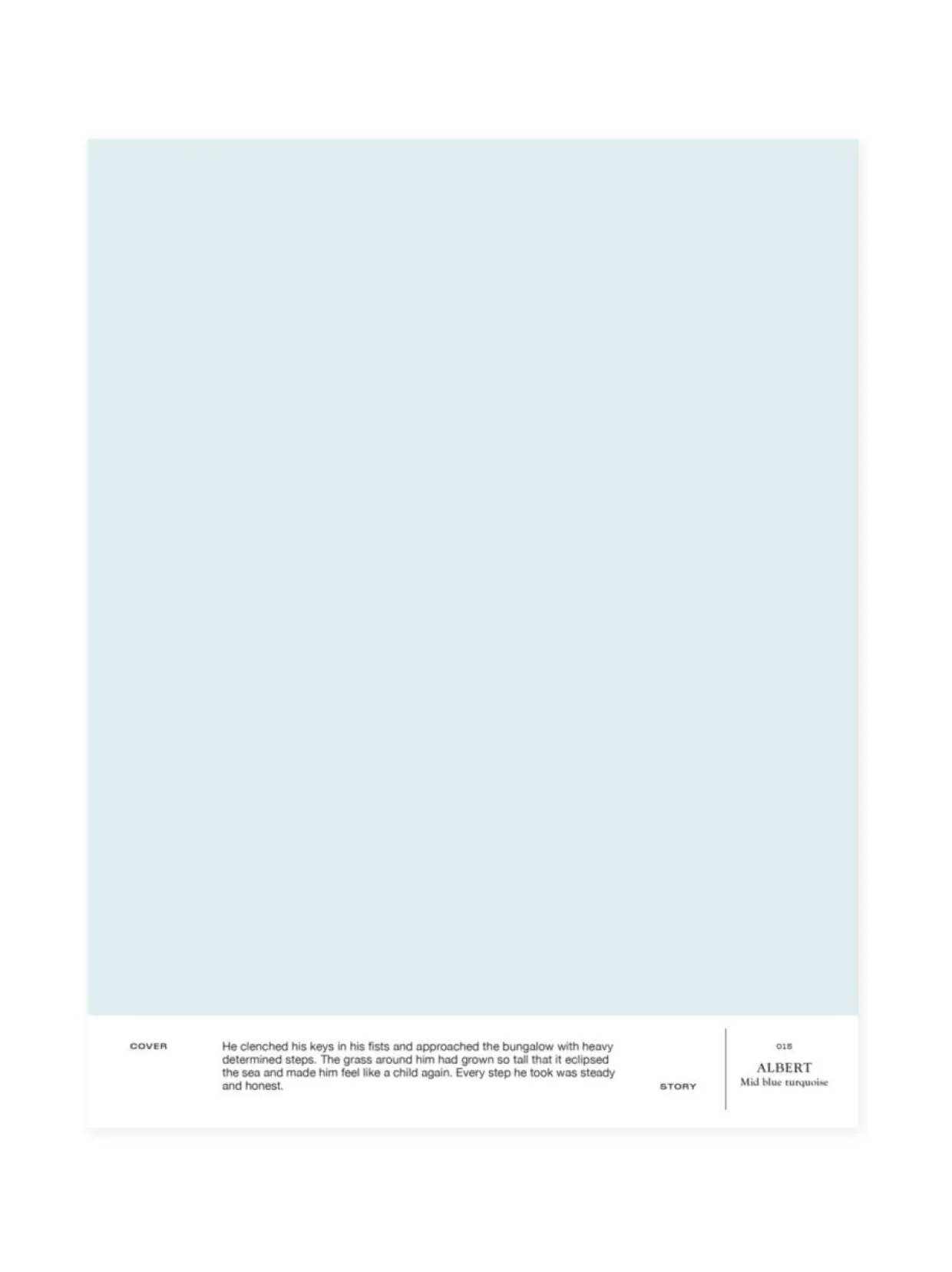 015 ALBERT on kevyesti murrettu vaalean turkoosinsininen, joka tuo klassista eleganssia tilaan. A4-kokoinen tarrataustainen värimalli on maalattu aidolla täyshimmeällä Cover Story -maalilla, joten voit olla varma, että sävy on sama kuin varsinaisessa maalissa. Mallitarran voi liimata helposti suoraan maalattavalle pinnalle ja katsoa, miltä sävy näyttää erilaisissa valaistuksissa – valon laatu ja määrä vaikuttavat merkittävästi siihen, miten havaitsemme värin.