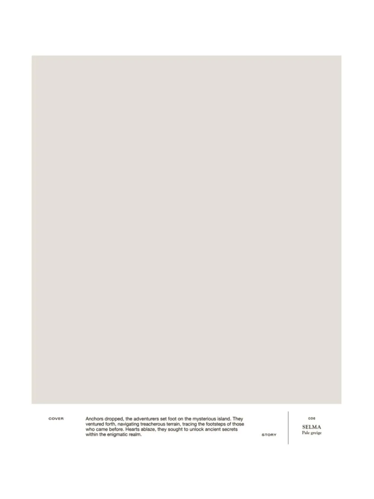 036 SELMA on vaalea harmaanbeige maalisävy, joka luo tilaan ajattoman harmonisen tunnelman. Tässä neutraalissa ja rauhoittavassa sävyssä yhdistyy kolmen vaalean neutraalin bestseller-sävymme parhaat ominaisuudet: 038 SELMA on kestosuosikkisävyjen, 009 PABLON ja 034 ELENAN astetta lämpimämmän harmaa sielunkumppani ja klassisen greigen 020 FRANZIN vaaleamman sisarus. Tämä hienoisen lämmin sävy tuo tilaan pehmeyttä ja rauhaa tekemättä tilasta pimeää. A4-kokoinen ja tarrataustainen värimalli on maalattu aidolla täyshimmeällä Cover Story -maalilla, joten voit olla varma, että sävy on sama kuin varsinaisessa maalissa. Mallitarran voi liimata helposti suoraan maalattavalle pinnalle ja katsoa, miltä sävy näyttää erilaisissa valaistuksissa, sillä valon laatu ja määrä vaikuttavat merkittävästi siihen, miten havaitsemme värin.