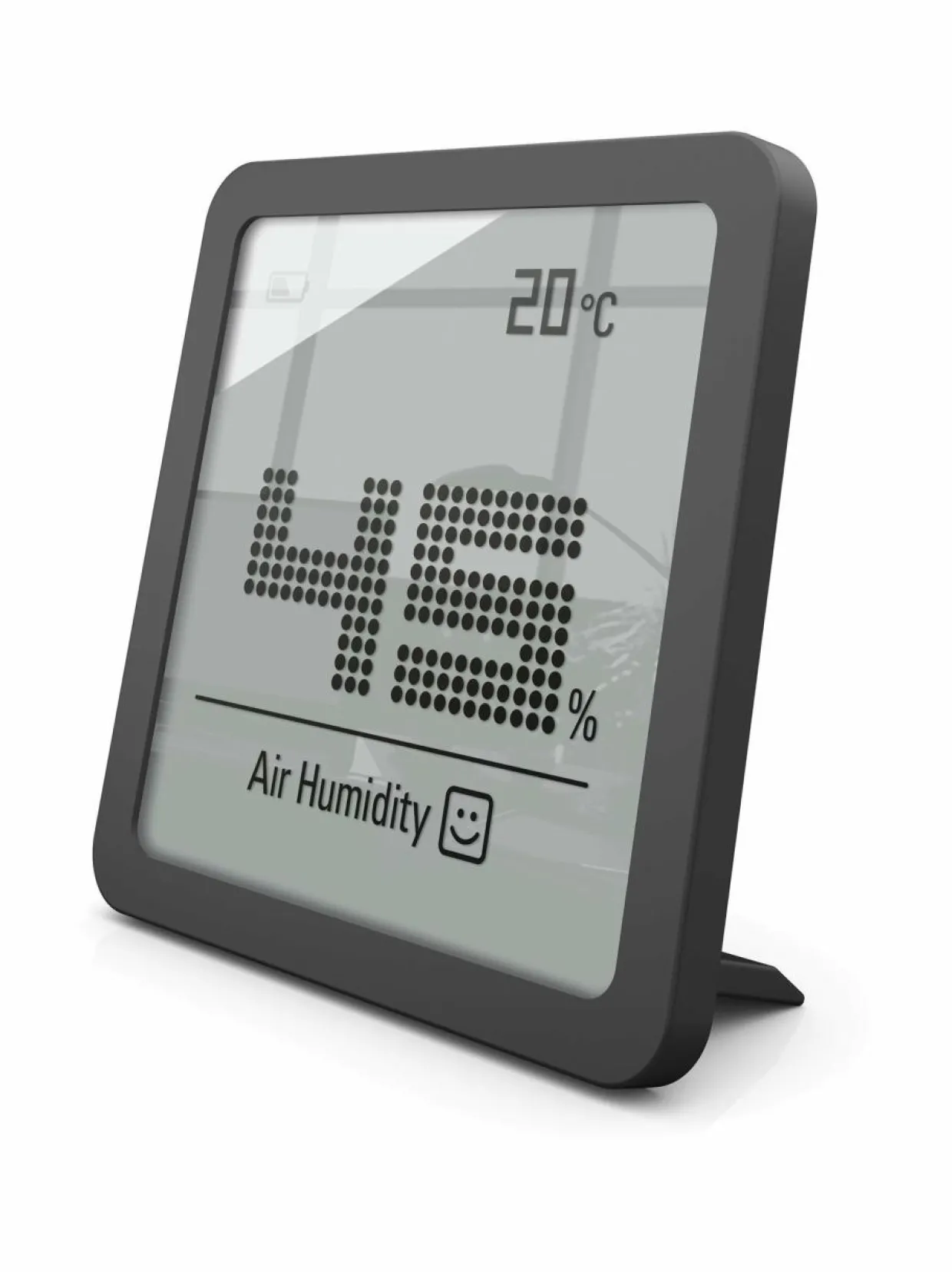 Pienikokoinen Stadler Form Selina Little -kosteusmittari kertoo selkeällä näytöllään niin sisäilman suhteellisen kosteuden kuin lämpötilan. Näytön alareunan hymynaama kertoo, mikäli ilmankosteus on optimaalisella 40-60 % tasolla. Hillityn muotoilunsa ja pienen kokonsa ansiosta huomaamaton mittari on helppo sijoittaa haluttuun paikkaan tai ottaa mukaan matkalle yöpymispaikan ilmankosteuden seurantaa varten.