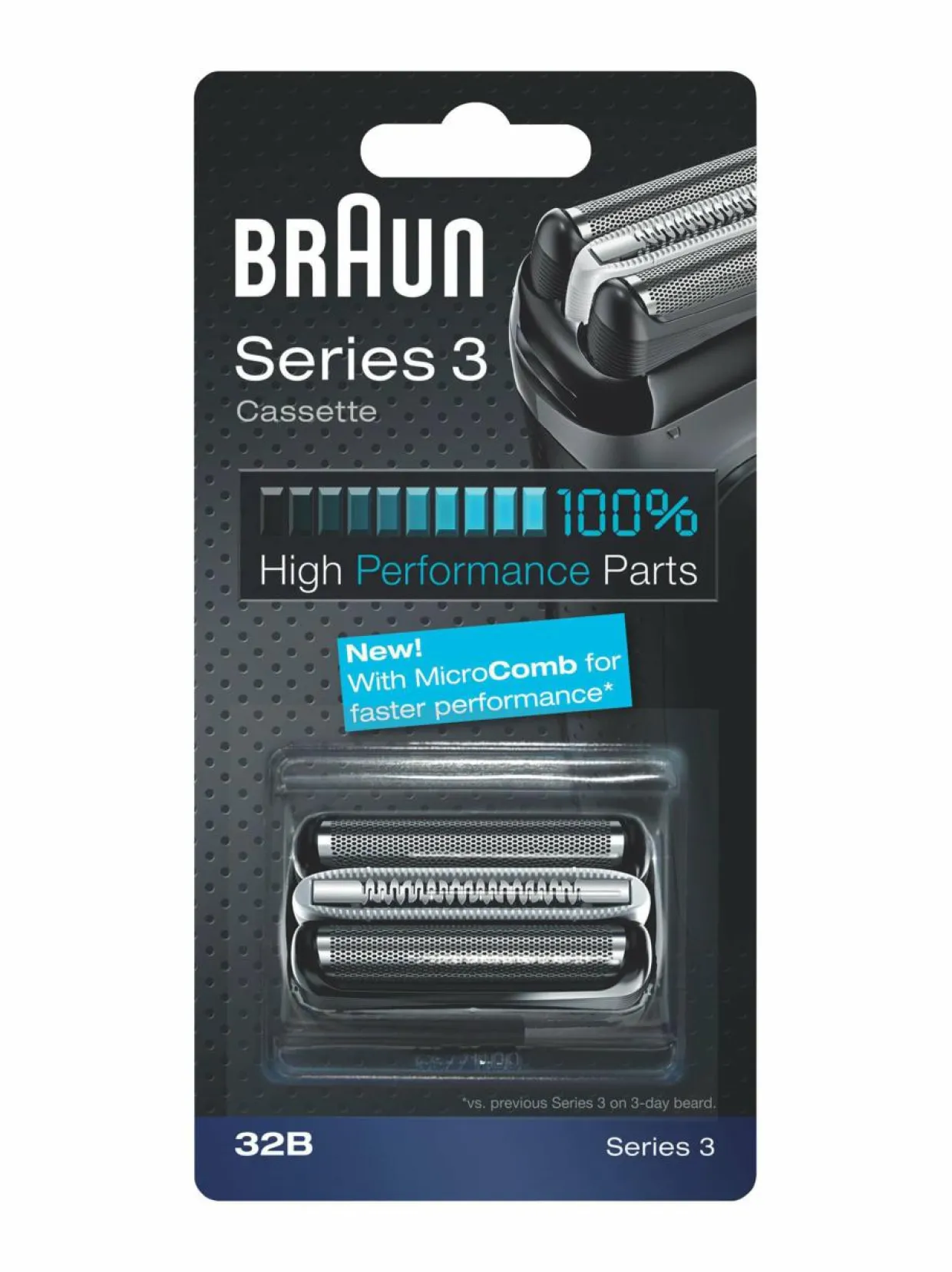 Pakkaus sisältää vaihdettavan teräverkon Series 3 -parranajokoneeseen.