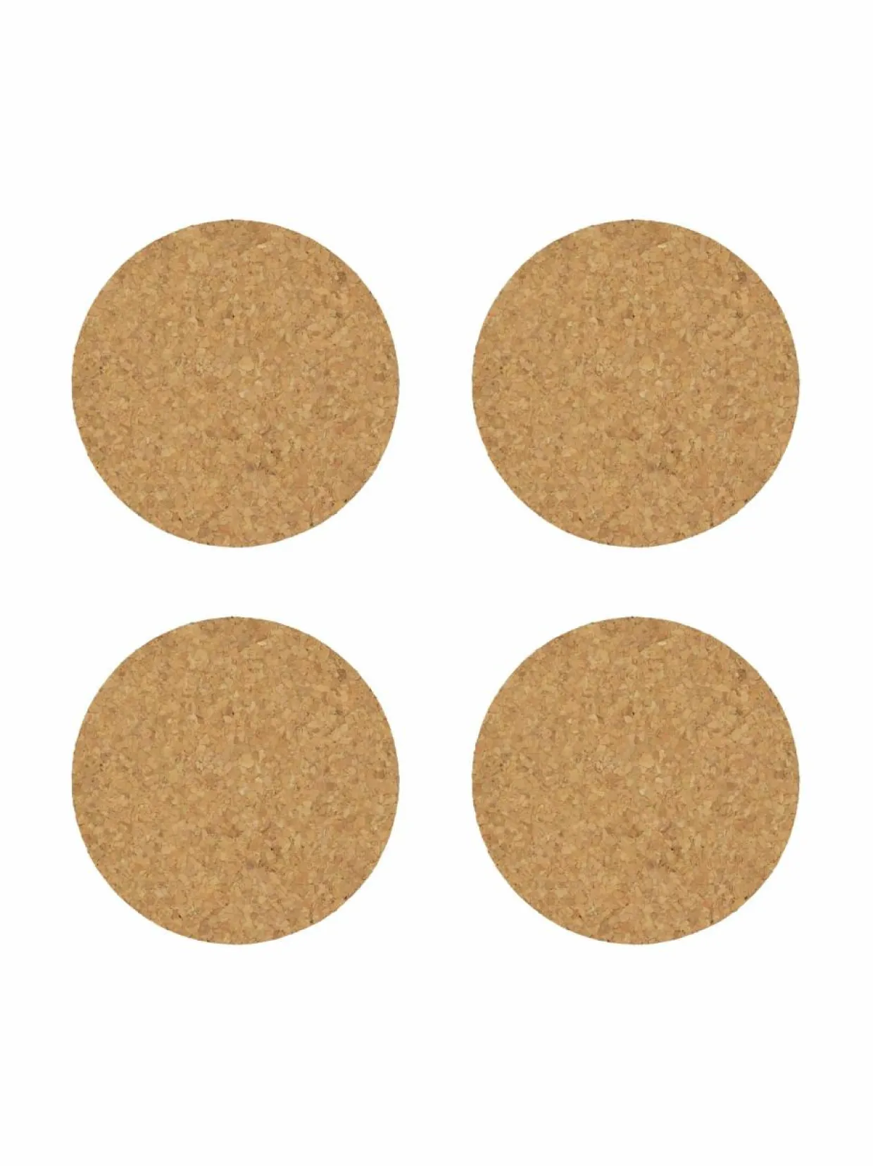 Korkista valmistetut, pyöreät lasinaluset ovat tyylikäs lisä kattaukseen. Pakkauksessa on neljä alusta.