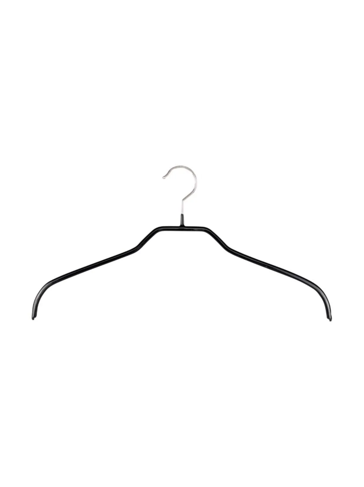 Liukumattomalla pinnalla varustettu ripustin, jossa olkapäitä tukeva muotoilu. Ihanteellinen neuleille ja kevyille takeille. Kapean muotonsa vuoksi ripustin säästää tilaa vaatekaapissa ja koukku on käännettävissä 360°. Ripustin ei sisällä raskasmetalleja.