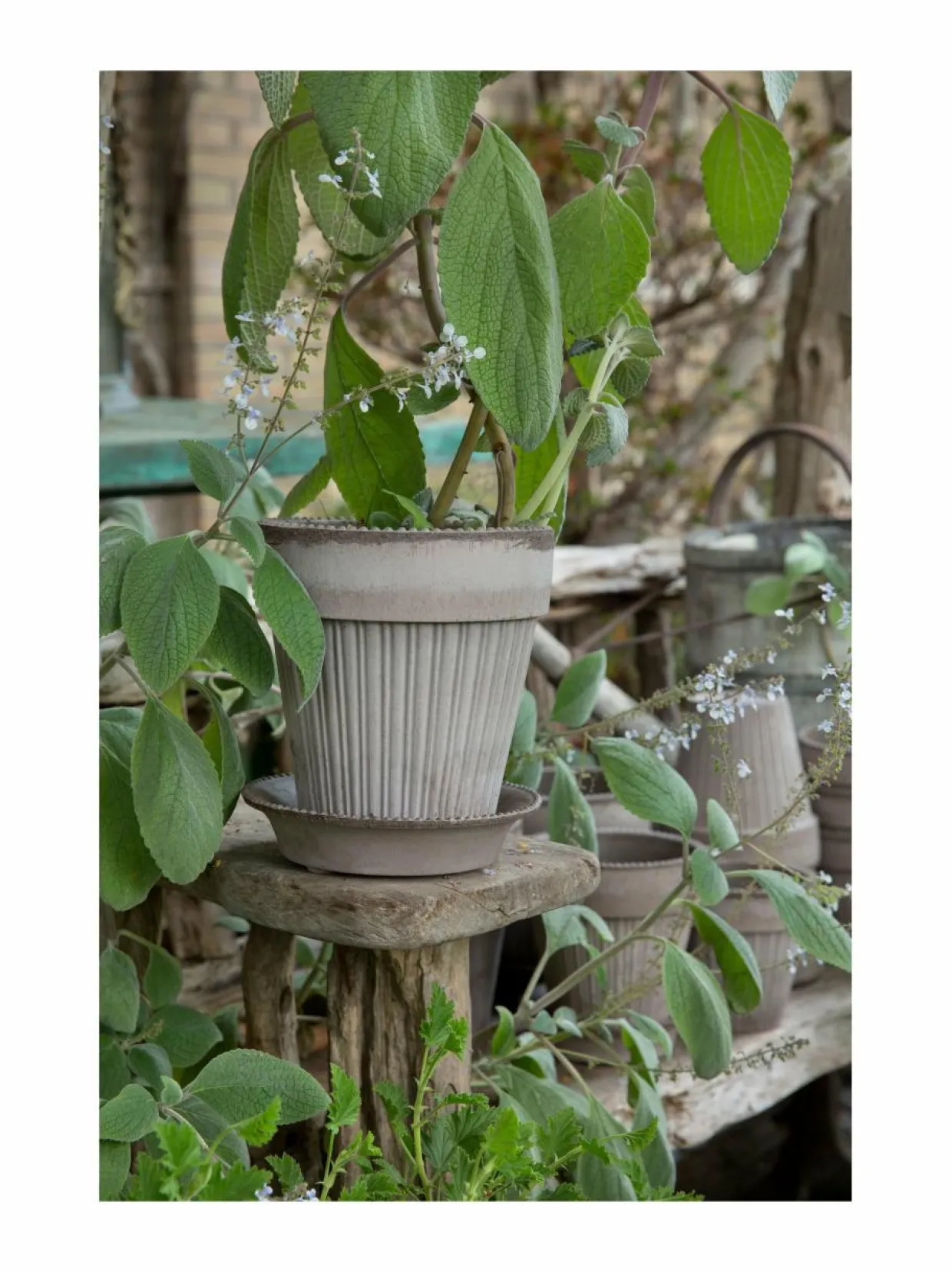 Bergs Potterin Simona-ruukku on saanut inspiraationsa 1800-luvun Pariisin romanttisesta estetiikasta. Ruukun selkeälinjainen pystysuuntainen uurrekuvio ja siro helminauhamainen reuna tuovat kauniin tekstuurin, joka täydentää kasvien luonnollista ilmettä.