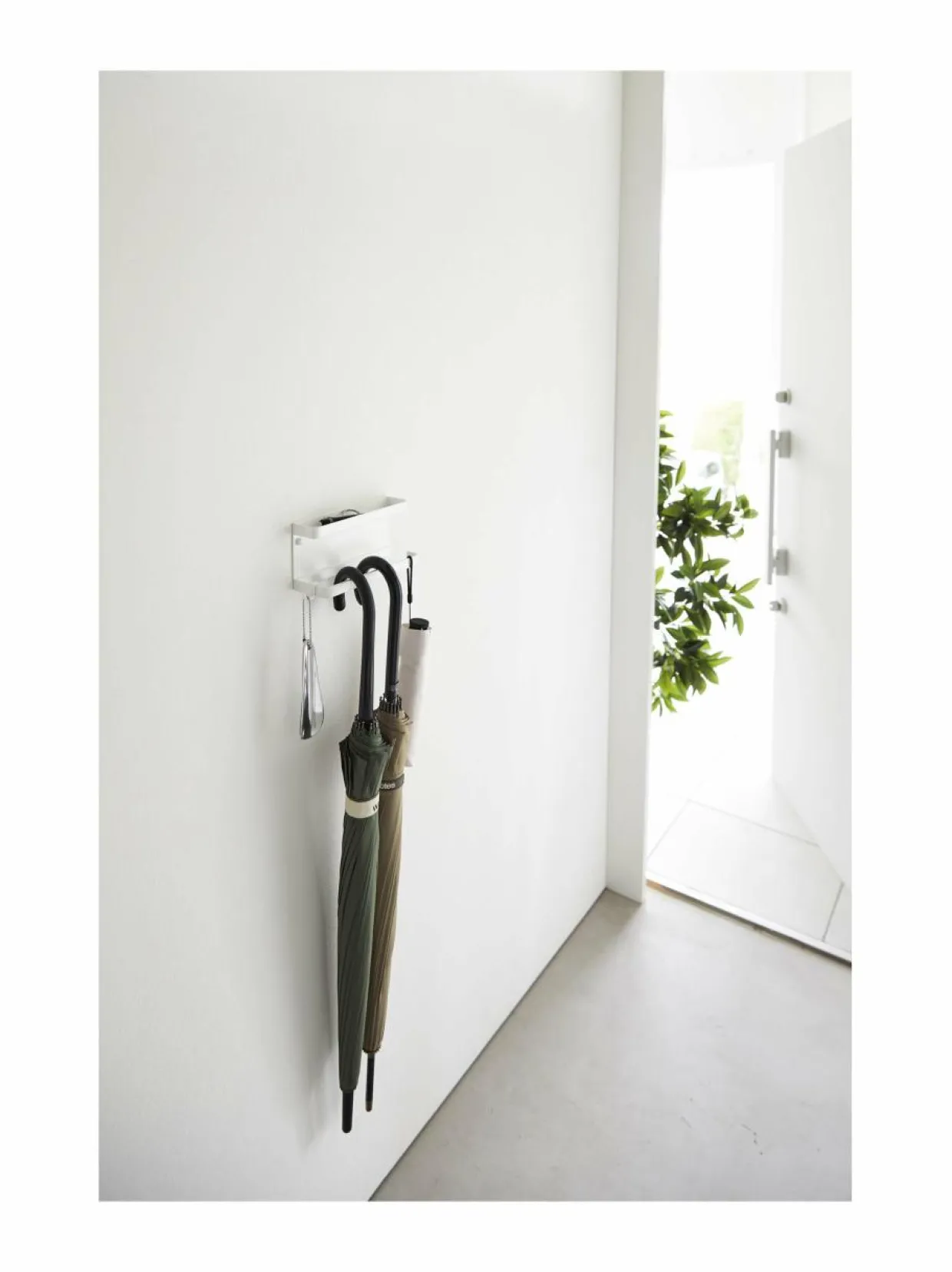 Smart-sarjan seinään kiinnitettävä sateenvarjoteline ratkaisee monta eteisen säilytyspulmaa viemättä lainkaan arvokasta lattiatilaa.