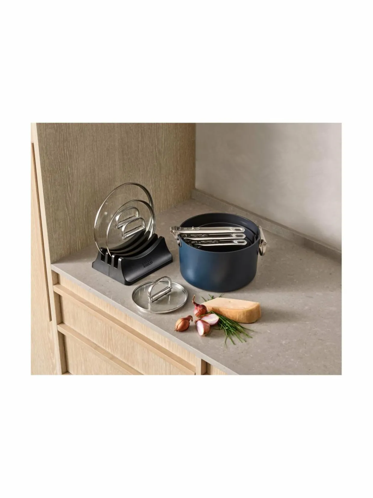 Space™ on Joseph Joseph merkin tilaa säästävä keittiösarja. Tässä Space™ Non-Stick -kattilasarjassa on taitettavat ruostumattomasta teräksestä valmistetut kahvat. Uuninkestävä (232 °C, kansi 200 °C) alumiinirunko myrkyttömällä ja tarttumattomalla keraamisella pinnoitteella sopii kaikille liesille – myös induktiolle. Mukana karkaistut lasikannet, joissa on myös kätevästi taitettavat kahvat. Settiin kuuluu: