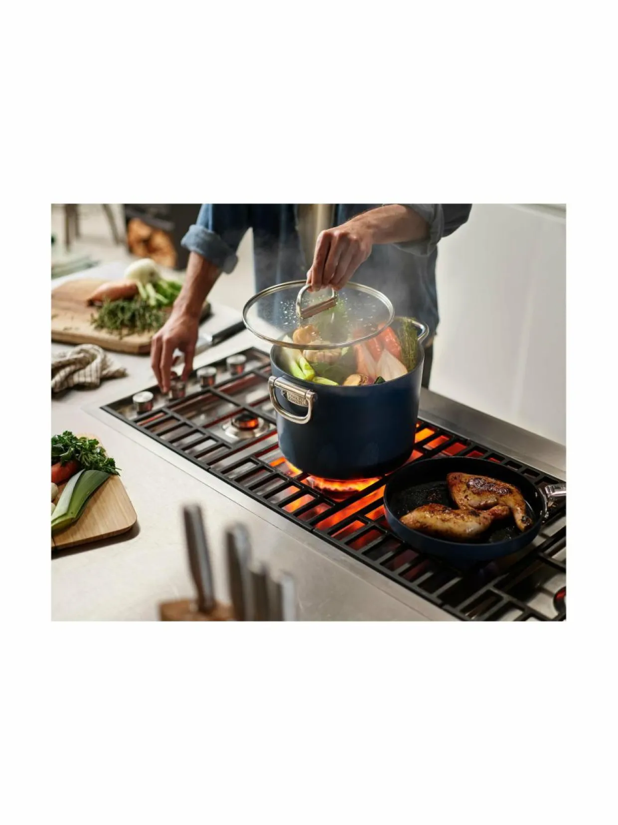 Tässä Joseph Josephin kattilassa on keraaminen tarttumisenestopinta ja kädensijat ruostumattomasta teräksestä. Se sopii kaikille liesille, mukaanlukien induktio, ja sitä voi käyttää myös uunissa 232 C asti. Mukana tulee lasinen kansi, jota voi käyttää uunissa 200 C asti.