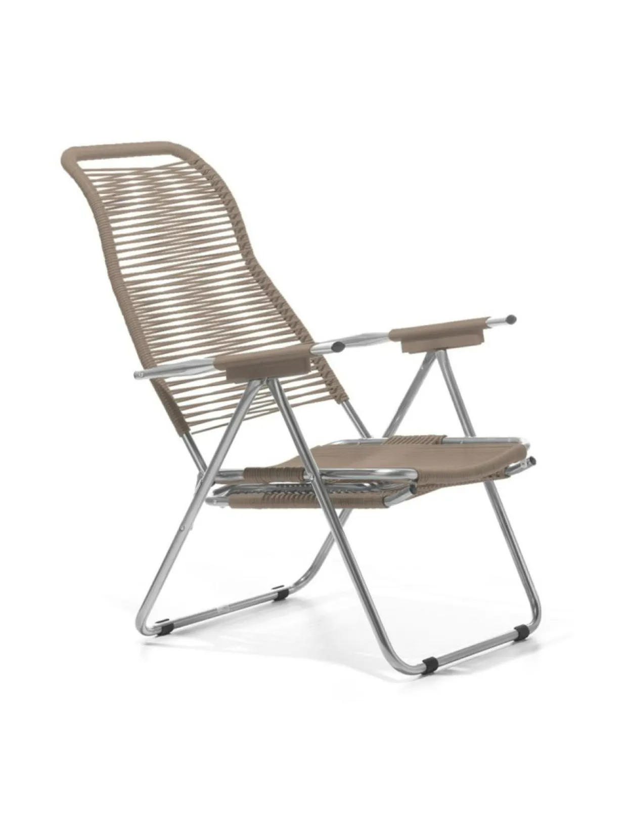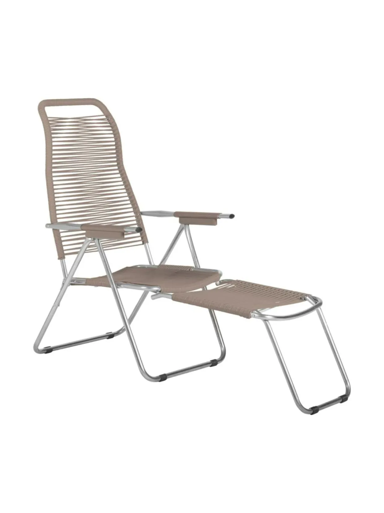 Korkealaatuisesta alumiinista valmistettu tuolin kehikko tekee siitä kestävän ja tukevan. PVC-materiaalista valmistettu spaghettimainen punos takaa maksimaalisen mukavuuden aurinkoisiin kesäpäiviin. Taittuvan rakenteensa ansiosta tuolia on helppo siirtää, varastoida tai vaikkapa ottaa rannalle mukaan.