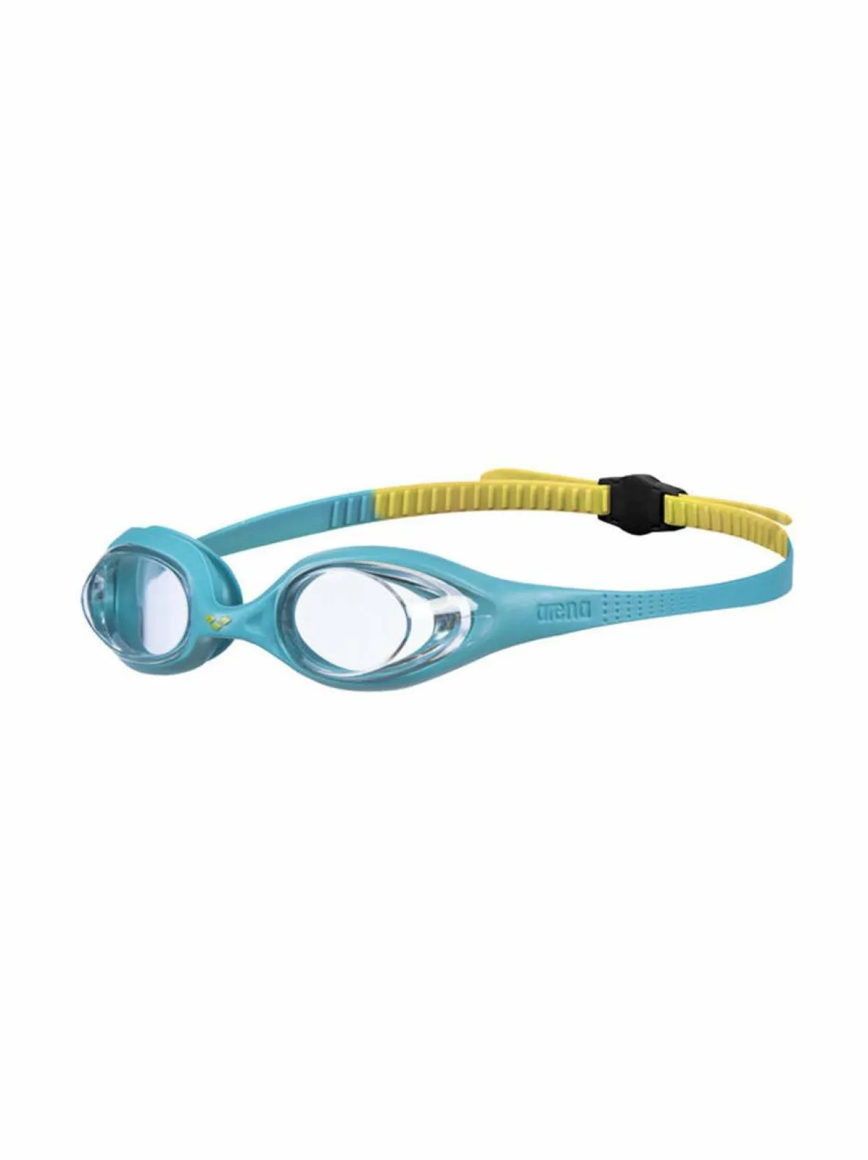 Kirkkaat kaksiväriset uimalasit lapsille. Takana moniasteinen kireydensäätö. Linssit ovat polykarbonaattia, muut osat silikonia.