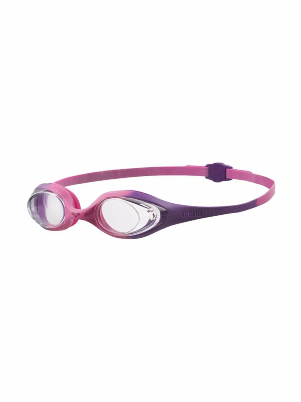 Pirteän ombre-värilliset kirkkaat uimalasit silikonihihnalla. Takana kireydensäätö.