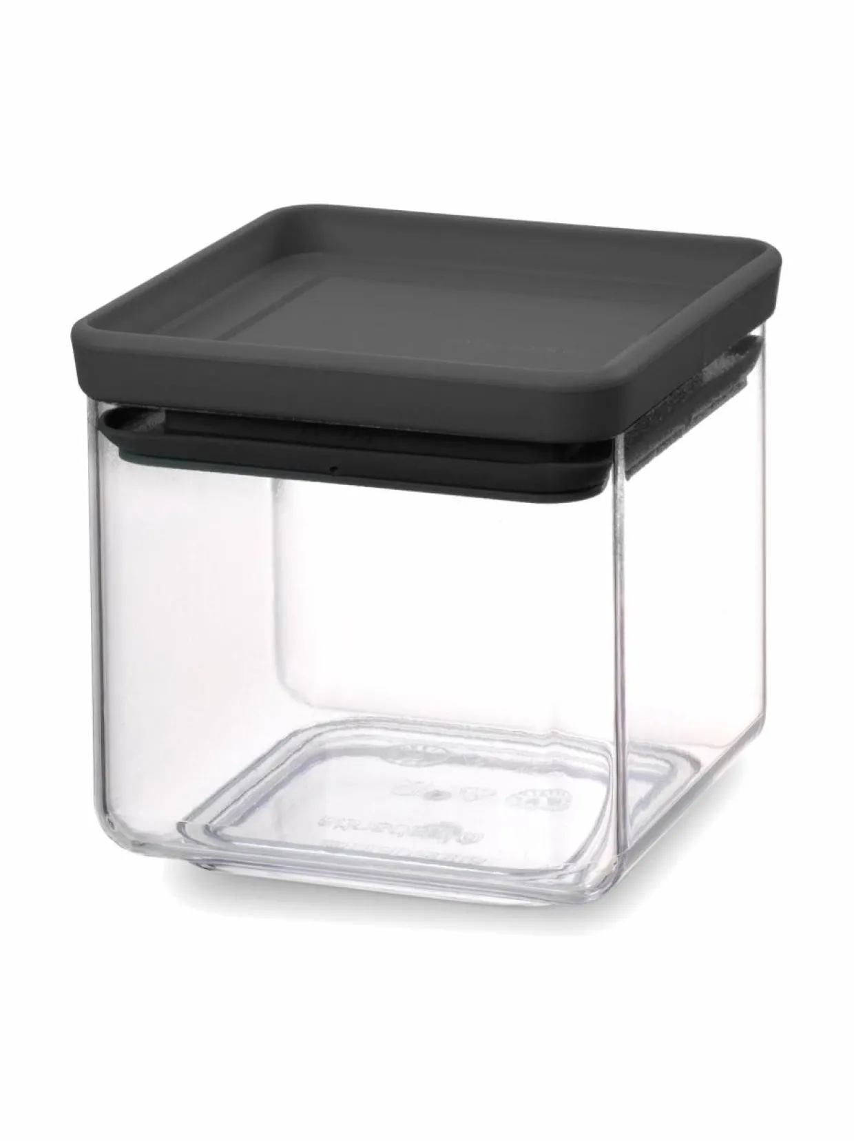 Käytännöllisestä, pinottavasta säilytyspurkista näet yhdellä silmäyksellä mitä se sisältää ja paljonko sisältöä on jäljellä. Silikonitiivisteen ansiosta sisältö pysyy tuoreena. Korkeus 10,5 cm, leveys ja syvyys 11 cm.