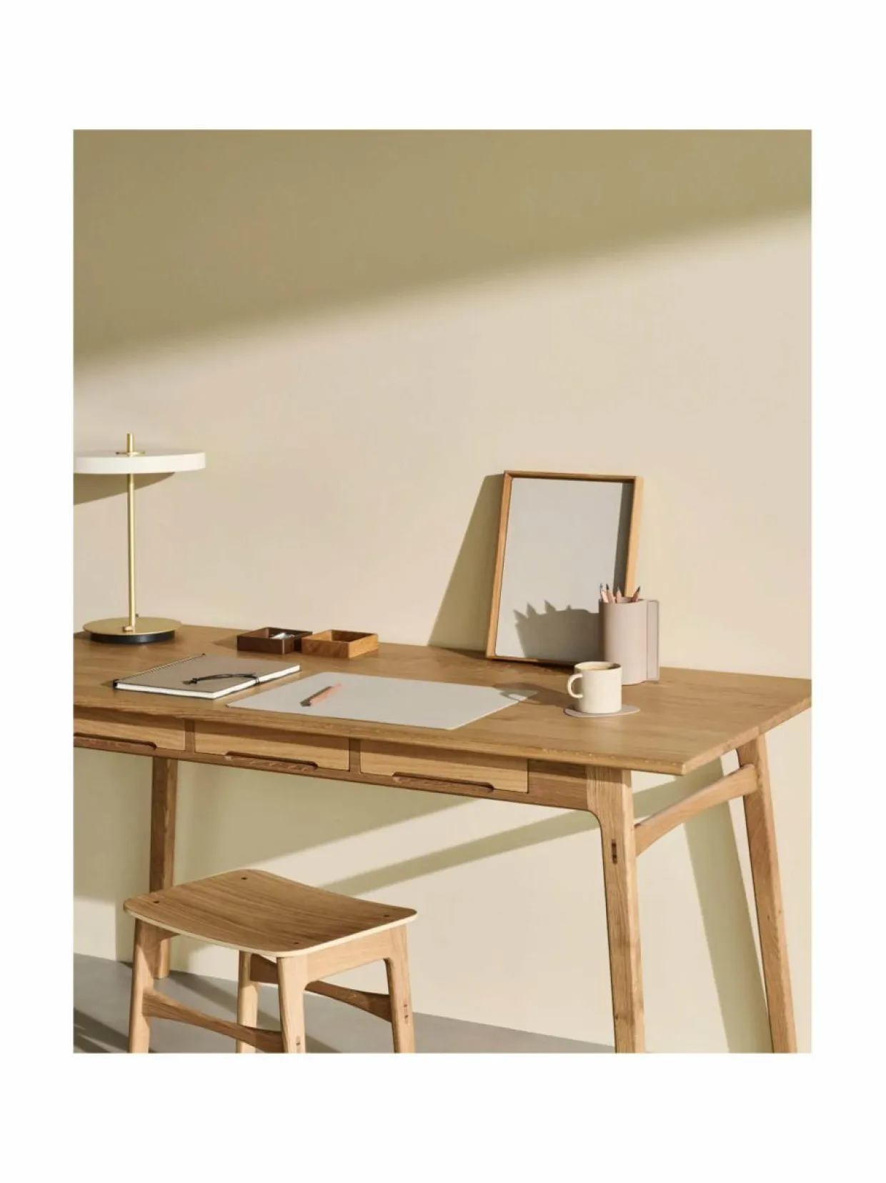 Tanskassa suunniteltu pöytätabletti mokantuntuisesta nahasta. Nahka on OEKO-TEX sertifioitua kasviparkittua vaate- ja huonekaluteollisuuden ylijäämänahkaa. Luonnonkuminen pohja estää liukumisen.
