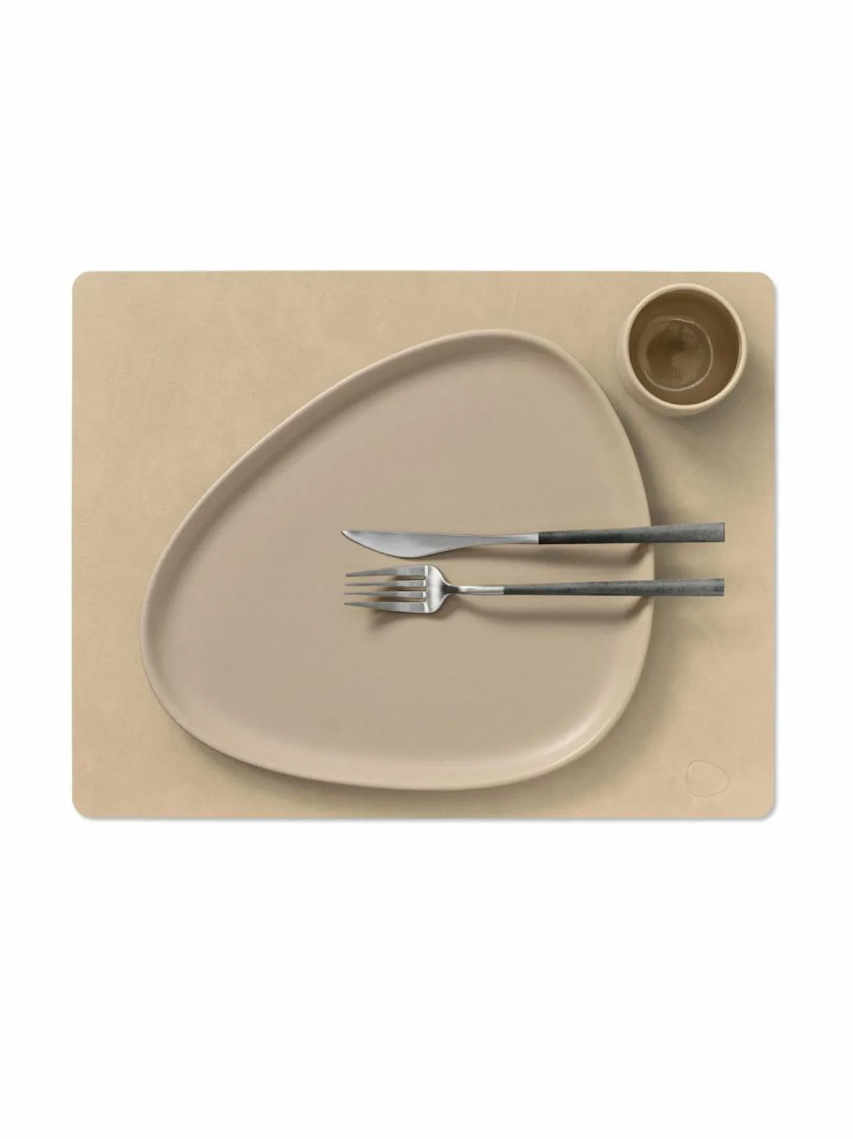 Tanskassa suunniteltu pöytätabletti mokkamaisella pinnalla. Materiaali on kestävää OEKO-TEX -sertifioitua kasviparkittua kierrätysnahkaa, joka on peräisin muoti- ja huonekaluteollisuuden ylijäämistä. Pohja on luonnonkumia, joka estää liukumisen.