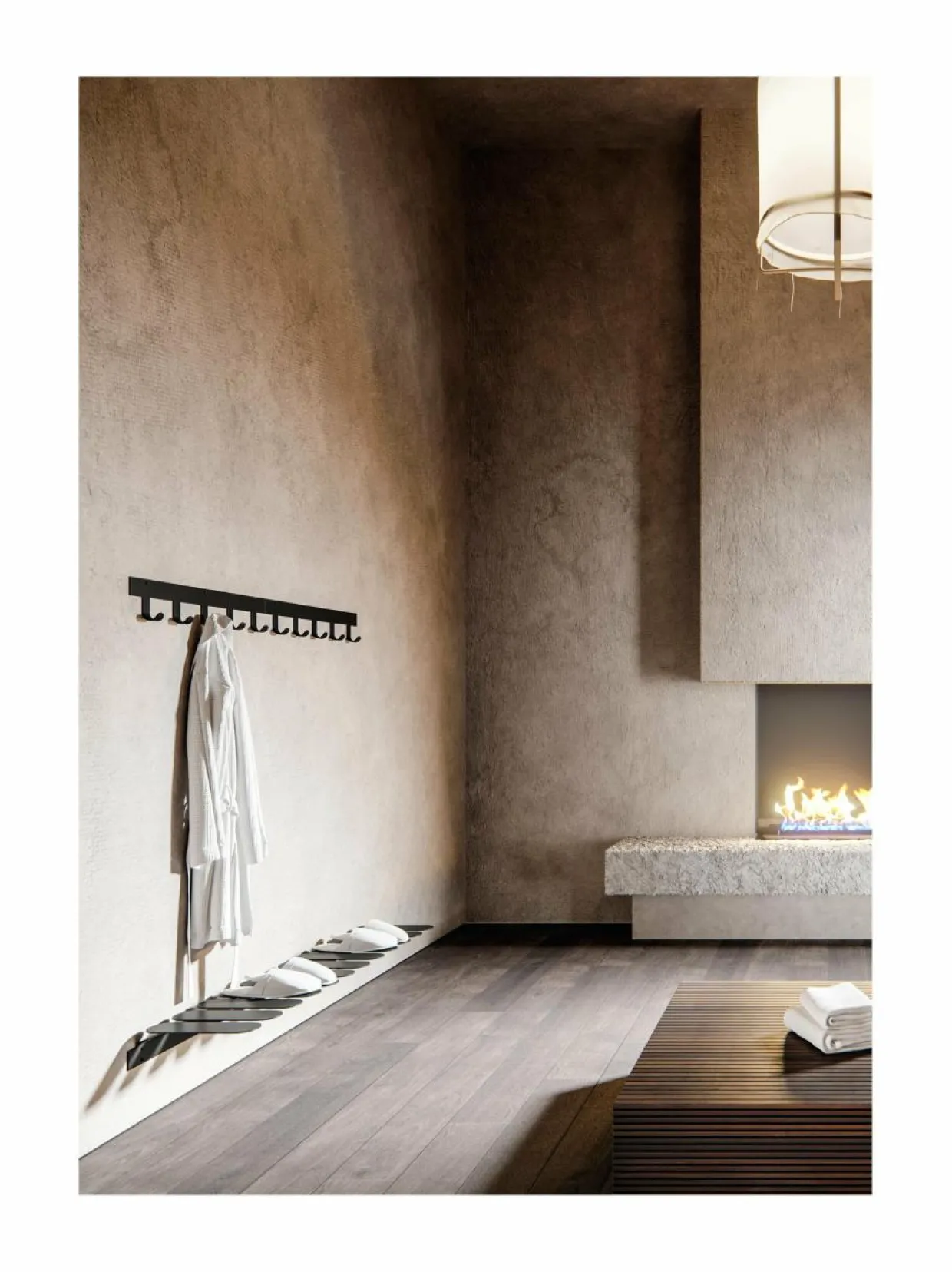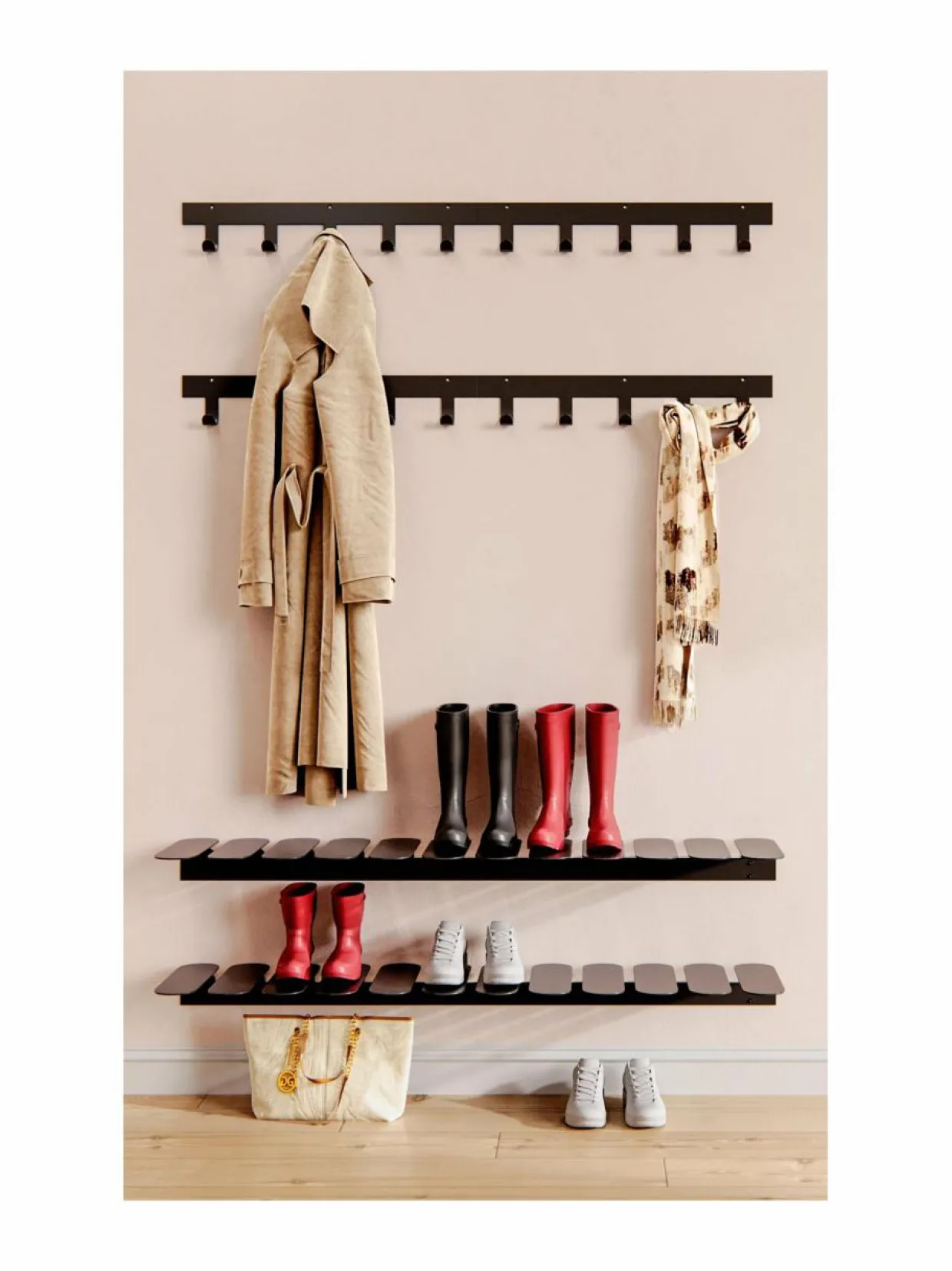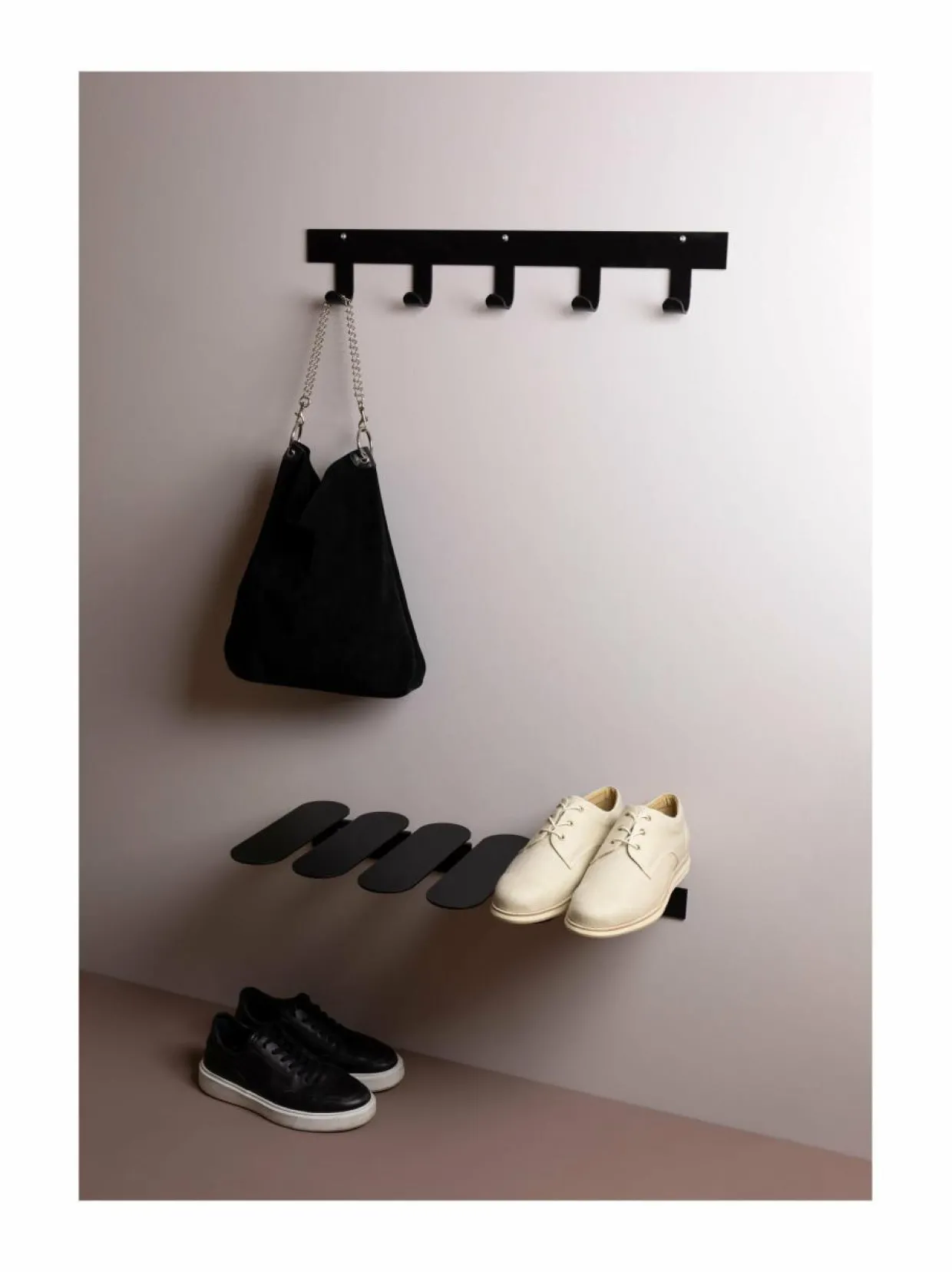 Mazen Step-kenkäteline on pelkistetty, hienoiseen kulmaan muotoiltu teline, jossa on kengänpohjankokoisia metallilaattoja, joille kengät asetellaan. Pieni kulma asettaa kengät paremmin esille ja kengät saavat hyvin myös tuulettua päivän käytön jälkeen.