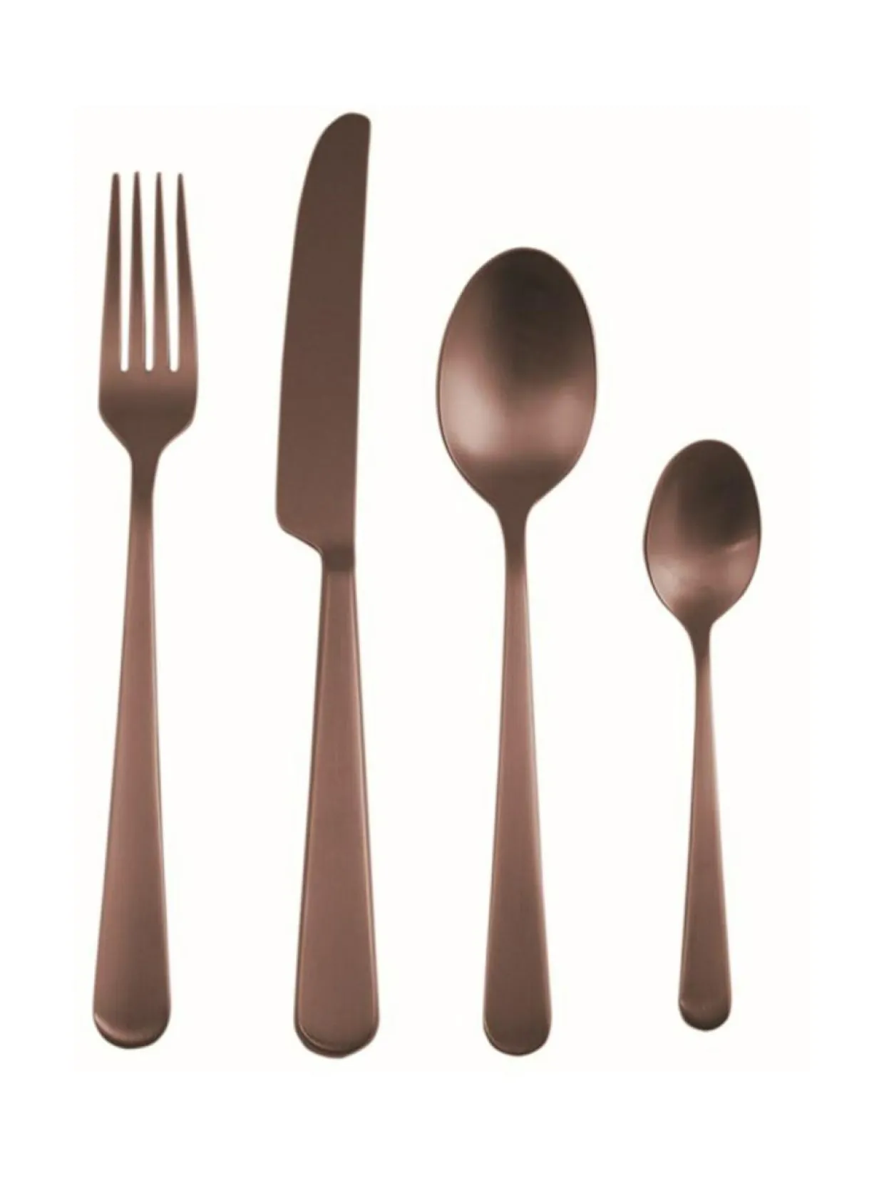 Stoccolma Bronzo Ice aterinsetti sisältää kuusi ruokahaarukkaa, kuusi ruokaveistä, kuusi ruokalusikkaa ja kuusi kahvilusikkaa. Pronssinen mattapinta on titanium-molekyylikäsittelyn tulos. Materiaali on korkealaatuista suomalaista konepesunkestävää ruostumatonta terästä.