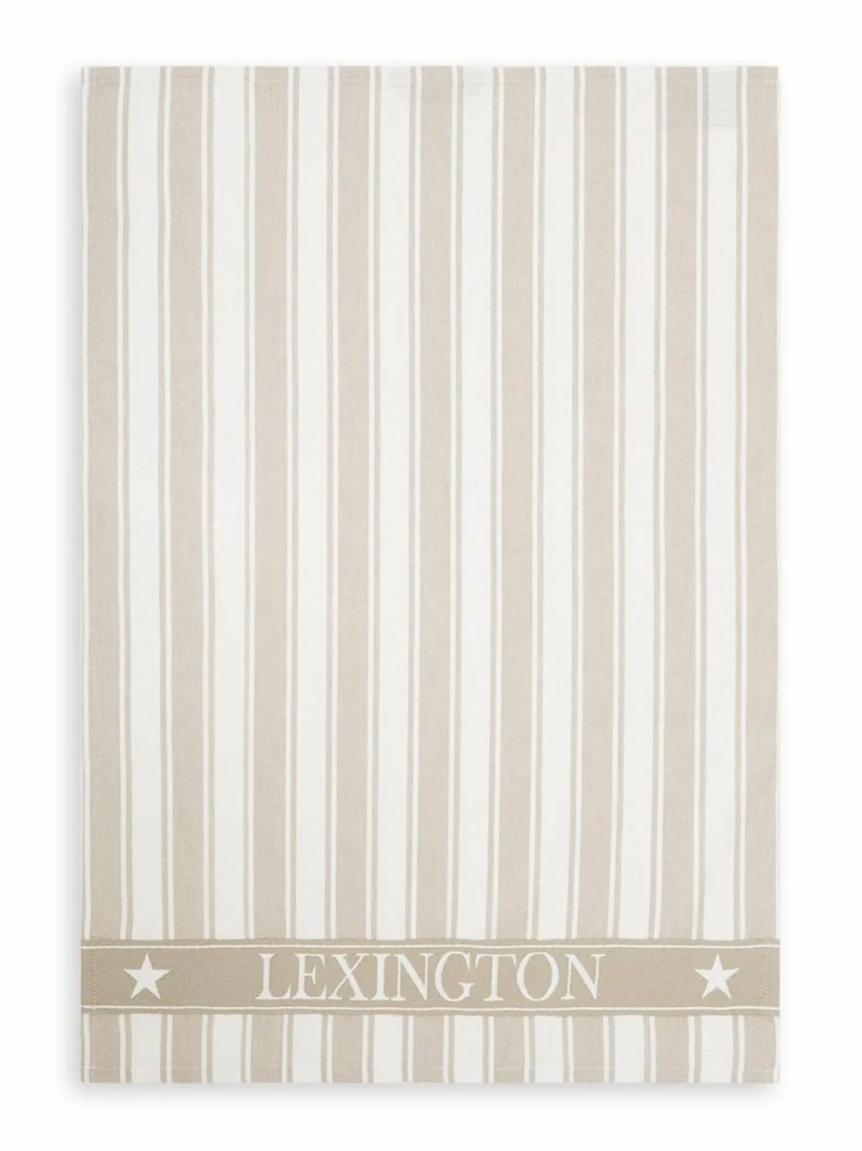 Lexington Striped Cotton -keittiöpyyhettä koristaa logoteksti. Raidallinen keittiöpyyhe on valmistettu puuvillasta.