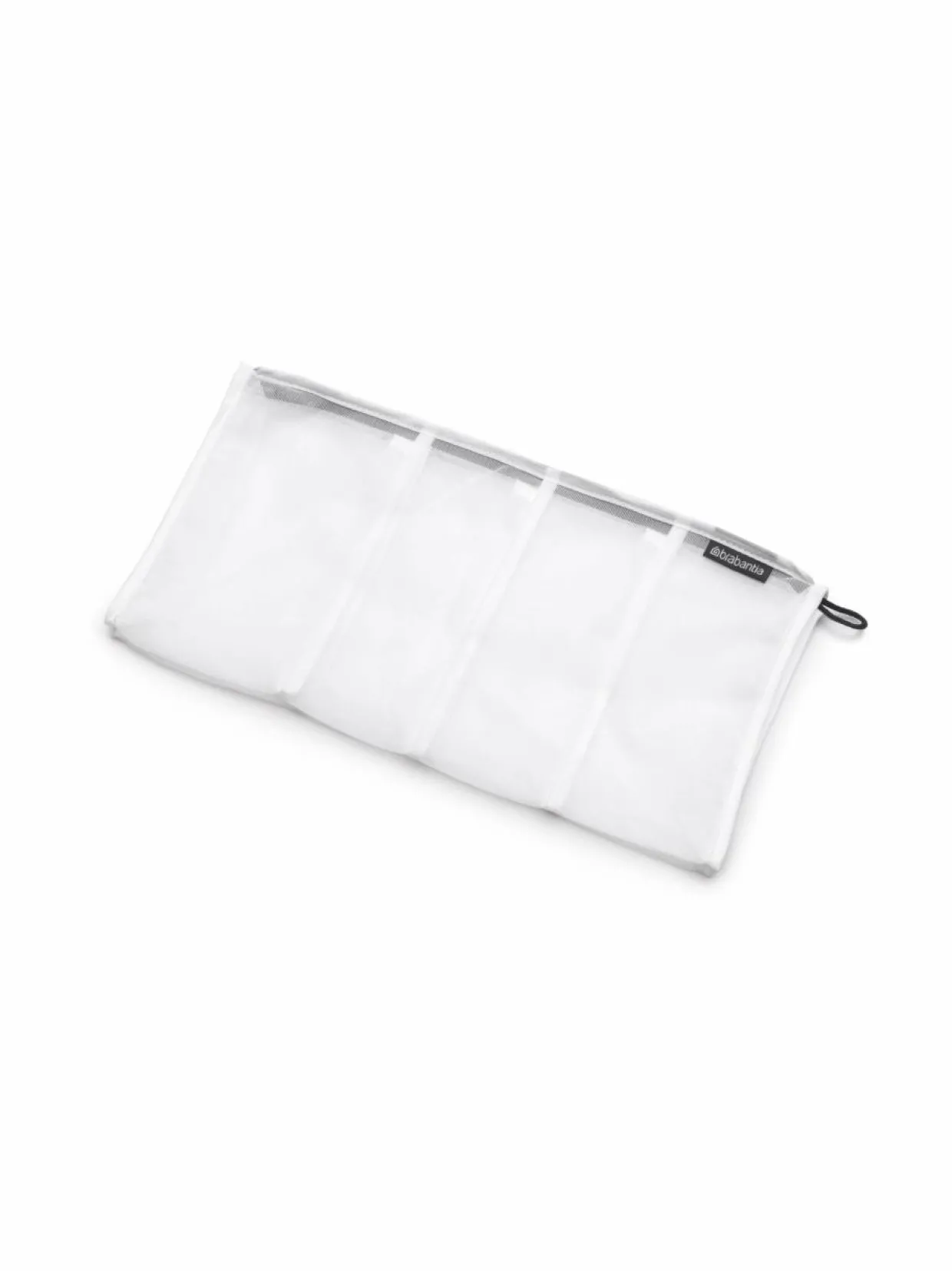 Ei enää kadonneita sukkia! Brabantian sukkien pesupussi pitää sukat tallessa. Se on verkkopussi, joka pitää jopa 4 paria sukkia yhdessä pesun, huuhtelun tai linkouksen aikana. Vesi virtaa suoraan läpi. 4 suureen lokeroon mahtuu myös isompia sukkia. Helppo sulkea vetoketjulla. Valmistettu korkealaatuisista materiaaleista, jotka takaavat kestävyyden. 100 % kierrätettävä käytön jälkeen.