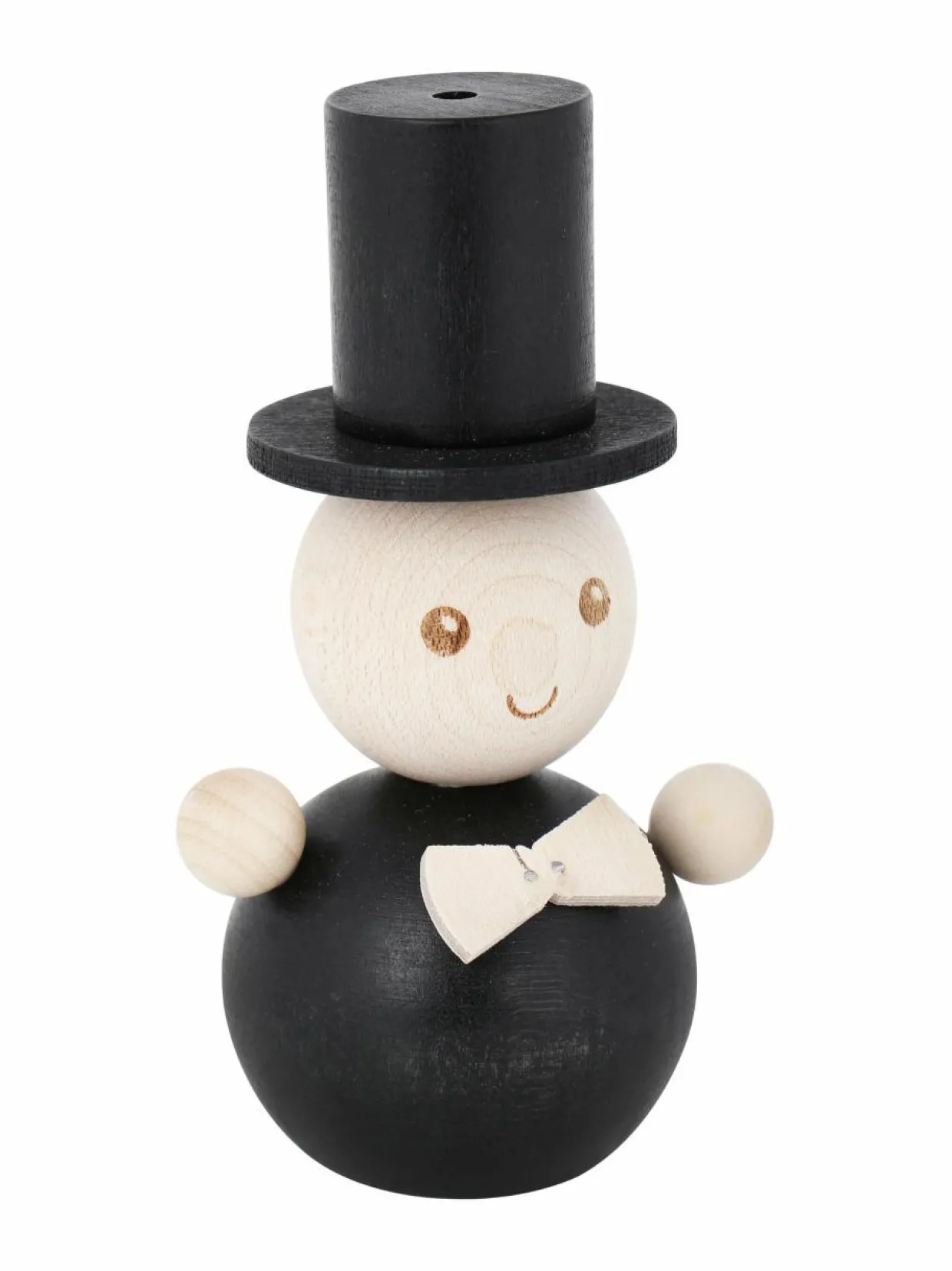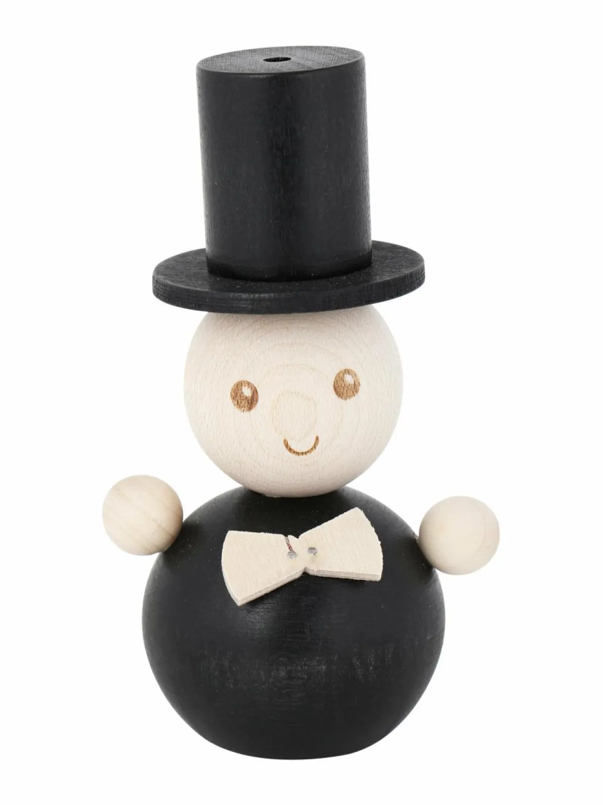 Aarikan komea Sulhanen on valmiina onnenpäiväänsä silinterihatussaan ja rusetissaan. Sulhanen sopii esimerkiksi juhlapöydän kattauksen koristeeksi tai osaksi kodin sisustusta. Suomessa käsityönä valmistettu koriste on myös hyvä lahjaidea.