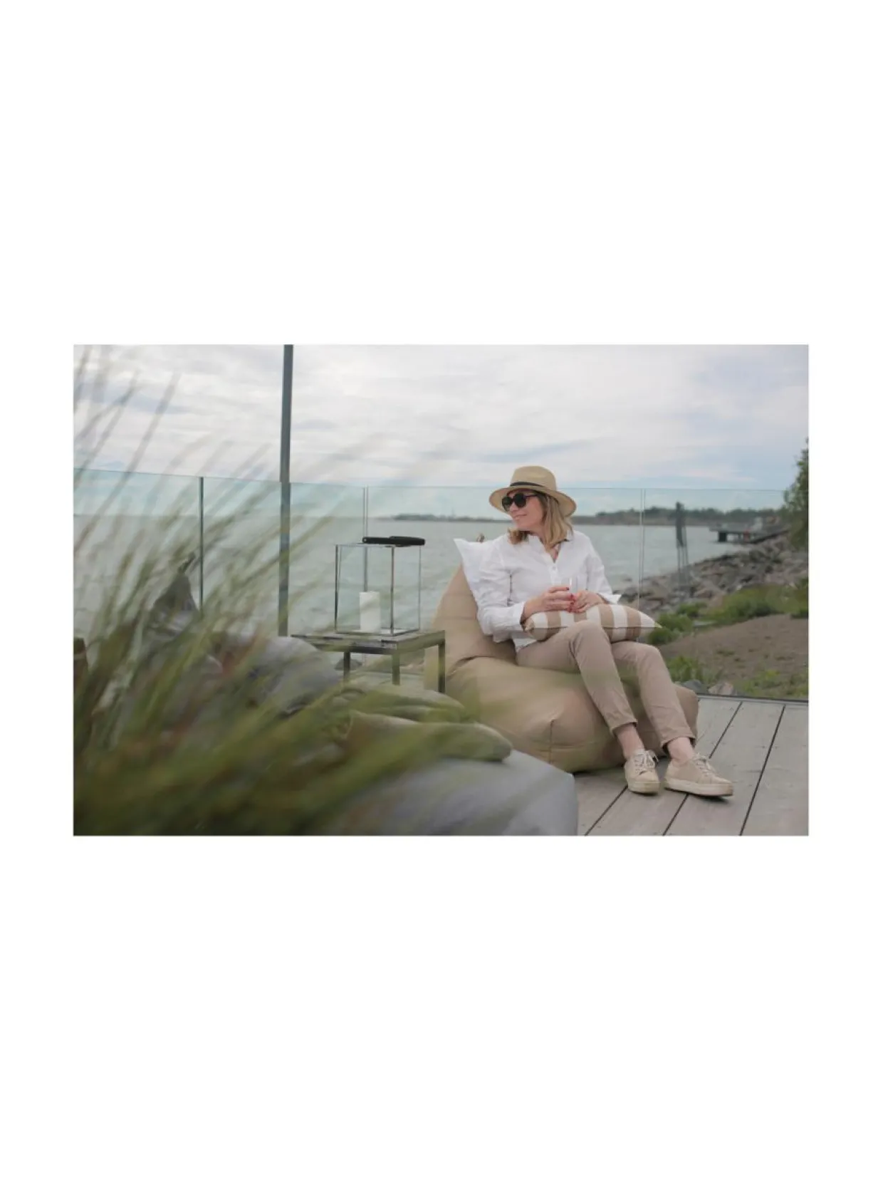 Moderni Syli-säkkituolisetti kutsuu rentoutumaan ja on oiva paikka mukavaan oleskeluun. Nordic Swan Livingin säkkituolisetillä voit sisustaa terassin, parvekkeen, veneen sekä muita tiloja, joissa olosuhteet vaativat tekstiililtä säänkestävyyttä. Säänkestävään settikokonaisuuteen kuuluu säkkituoli, lattiatyyny ja niskatyyny 50x25cm.