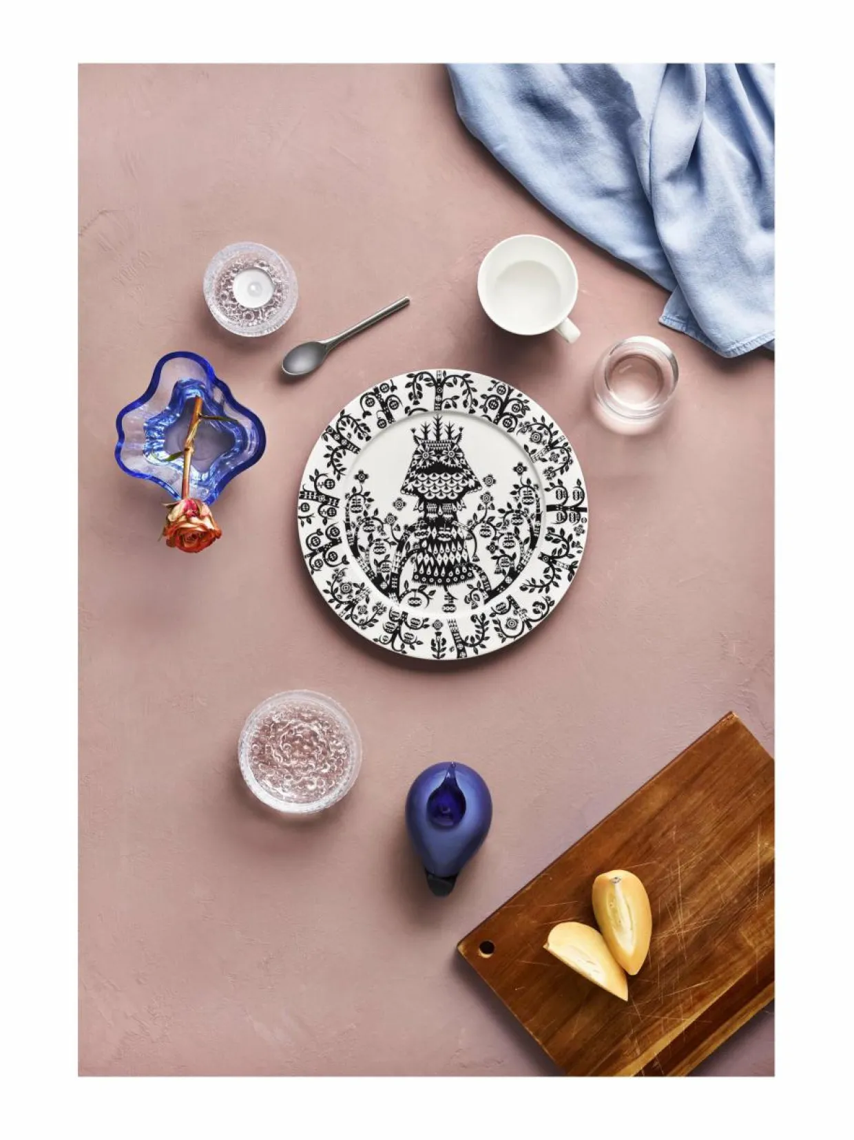 Muotoilija Klaus Haapaniemen fantasiataide ja Heikki Orvolan selkeä muotoilu yhdistyvät uniikissa Taika-sarjassa. Lumoavan sarjan kuviointi on saanut inspiraationsa kansanperinteen ja satujen värikkäästä kuvamaailmasta, joka nousee kauniisti esiin pelkistetyssä ja selkeässä muotoilussa.Monikäyttöinen Taika-lautanen sopii arki- ja juhlakattauksiin. Pöllöaiheisen kuvioinnin runsaat yksityiskohdat korostuvat tyylikkään mustavalkoisessa lautasessa ja koristavat myös lautasen reunaa.Yhdistele erivärisiä astioita näyttäväksi kokonaisuudeksi. Kerää yksittäisistä osista kokonainen sarja itselle tai lahjaksi. Mikroaaltouunin ja konepesun kestävä.
