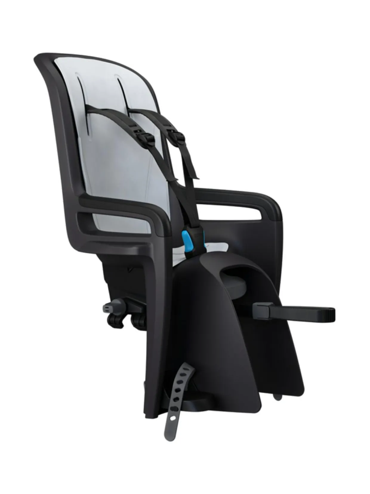 Thule RideAlong 2 pyöränistuin tarakkaan asennetaan pyörän tavaratelineeseen. Istuimen telinekiinnitysjärjestelmä varmistaa aina nopean ja turvallisen kiinnityksen. Istuimen viisi eriasteista kallistuskulmaa (jopa 20 astetta) tarjoaa lapselle mahdollisuuden esim. päiväuniin kesken matkan ja tekee matkustuksesta aina mukavaa. Säädettävät kolmipistevaljaat varmistavat lapsen turvallisuuden. Voit vyöttää lapsen paikalleen turvallisesti ja helposti lapsiturvallisella turvasoljella, jossa on suuri painike. Integroidut sivusuojat suojaavat lapsen käsiä, kun pyörä nojaa seinää vasten. Yhdellä kädellä säädettävät jalkahihnat ja jalkatuet varmistavat täydellisen sopivuuden lapsen kasvaessa. Istuimen käännettävä pehmuste on vettähylkivä ja se voidaan irroittaa konepesua varten. Sisäänrakennettu heijastin ja turvavalo tuo lisänäkyvyyttä pimeällä liikkuessa. Lisätietoja: