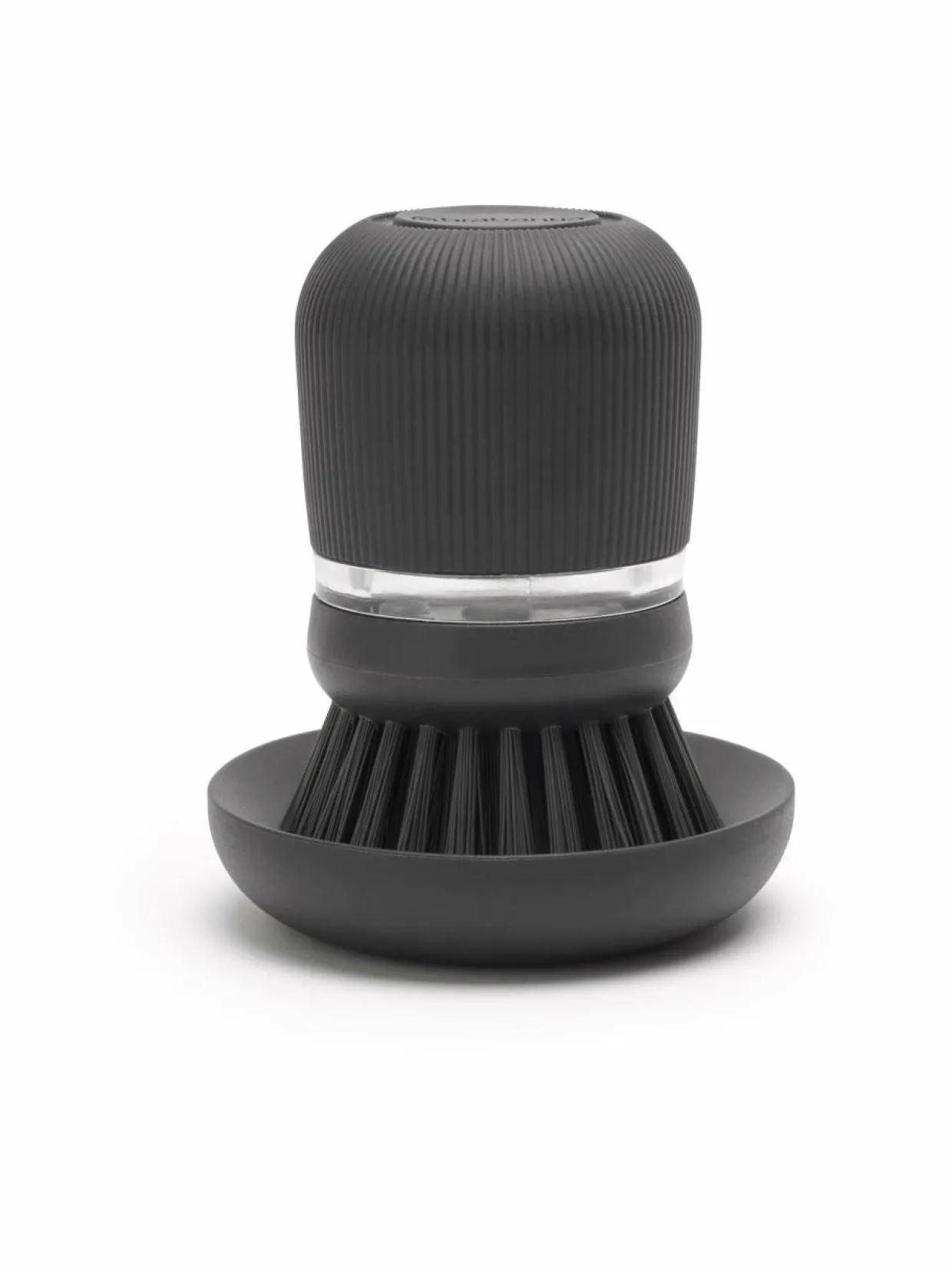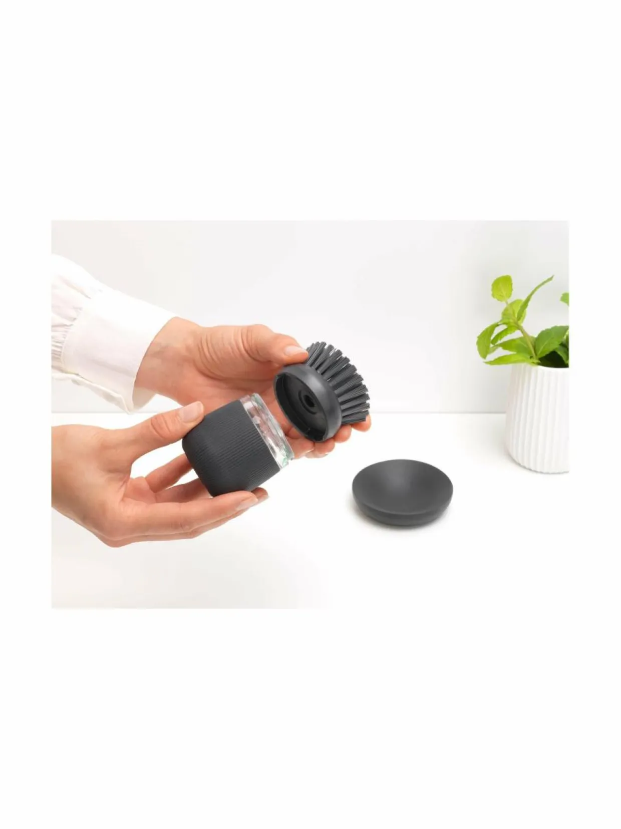 Brabantian saippuatäyttöinen tiskiharja helpottaa tiskaamista. Päässä on painike, jota painamalla harjasta saa oikean määrän tiskiainetta. Nylonharjakset ovat tarpeeksi tehokkaat lian irtoamiseen, mutta sopivan hellävaraiset, etteivät ne naarmuta. Helppo käyttää ja täyttää. Myös harjaosa on vaihdettavissa (myydään erikseen).