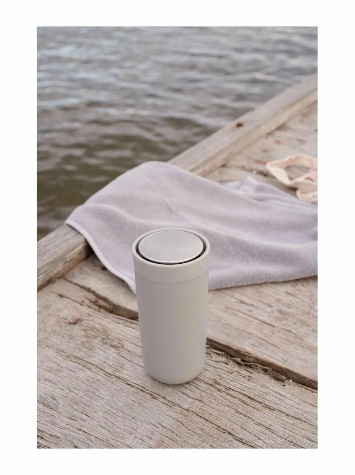 Tyylikäs Stelton To Go Click -termosmuki pitää juomasi pitkään kuumana tai kylmänä kaksoisseinämien avulla. Innovatiivisen Smart Click -toiminnon ansiosta kannen avaaminen ja sulkeminen onnistuu helposti kantta painamalla. Ruostumattomasta teräksestä valmistettu muki on pesukoneen kestävä. Muoviosat eivät sisällä bisfenoli A:ta tai ftalaatteja.