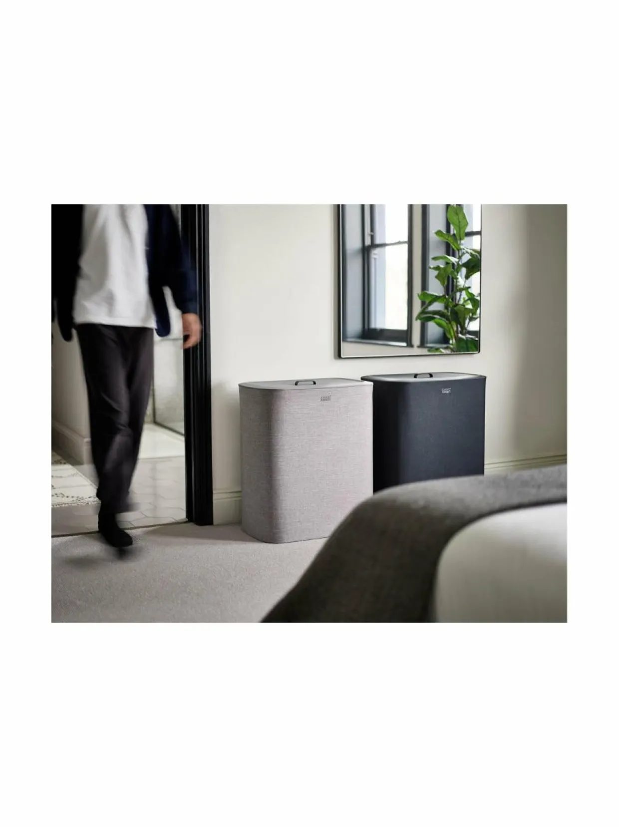 - Kannen alla 3 x 30 litran tekstiilistä tote-kassia, joihin voi lajitella pyykit