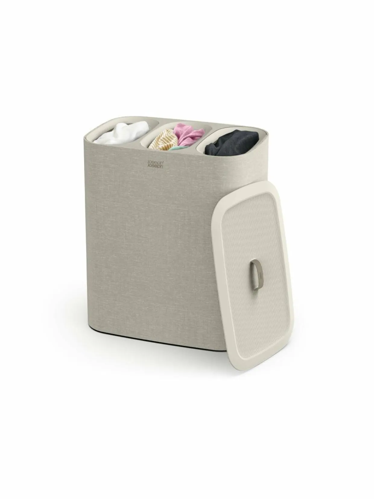 Tota sopii moneen tilaan ja sisustukseen. Tota Trio – erotteleva pyykkikori helpottaa arkea erottelemalla vaalean, tumman sekä värillisen pyykin omiin 30 litran lokeroihinsa. Pyykit kulkeutuvat kätevästi pyykkitupaan olalla kannettavista kantokahvoista. Pussin pohjassa oleva käytännöllinen apukahva helpottaa tyhjennystä. Tyhjät pyykkipussit asettuvat takaisin omiin lokeroihinsa vaivatta.