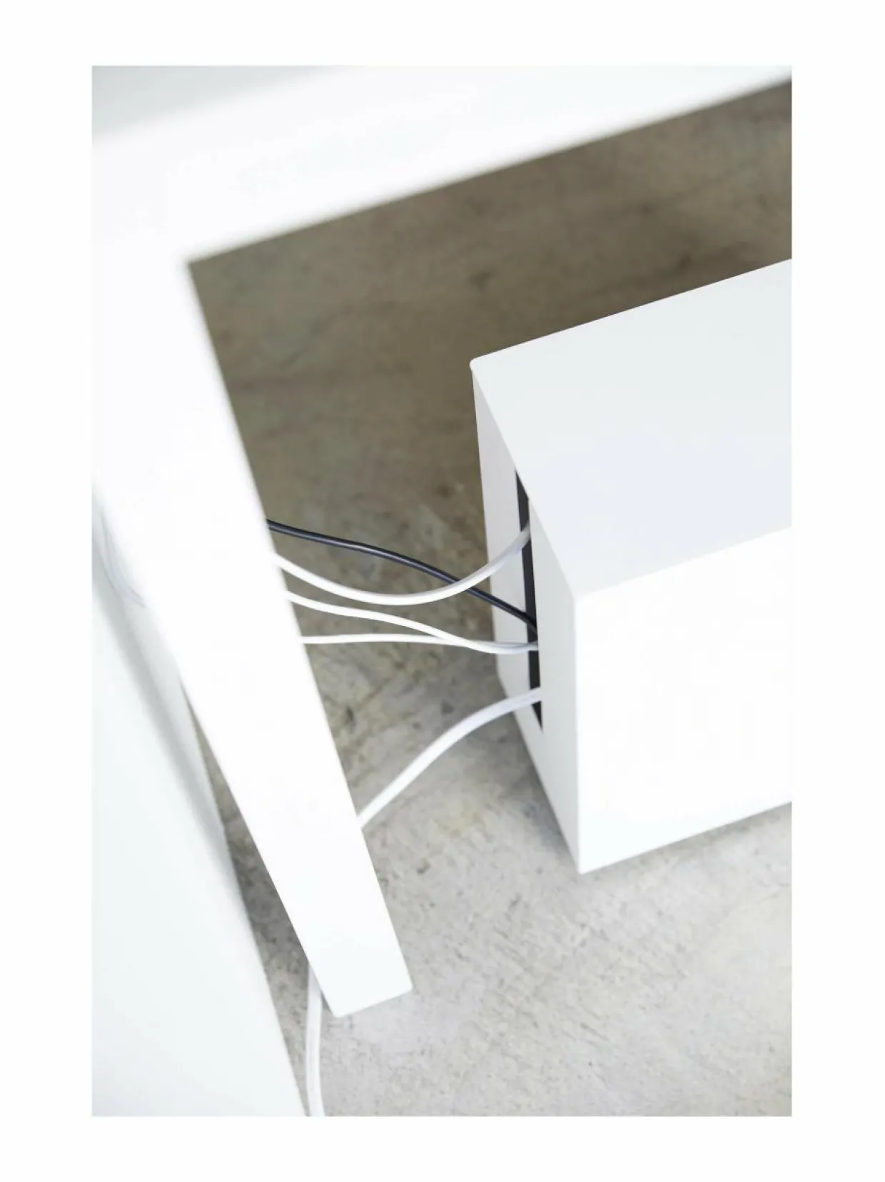Tyylikäs Tower-sarjan johtolaatikko auttaa kesyttämään työpöydän alla vallitsevan johtokaaoksen. Tilavan, jauhemaalatusta teräksestä valmistetun laatikon sisällä esimerkiksi sähköjohdot, reitittimet ja ulkoiset kovalevyt ovat siististi piilossa. Sisällä on hylly, johon voi laittaa esimerkiksi jatkojohdon. Rei´itetty pohja ehkäisee ylikuumenemista, ja pyörät helpottavat laatikon liikuttelua esimerkiksi imuroitaessa. Suunniteltu Japanissa.