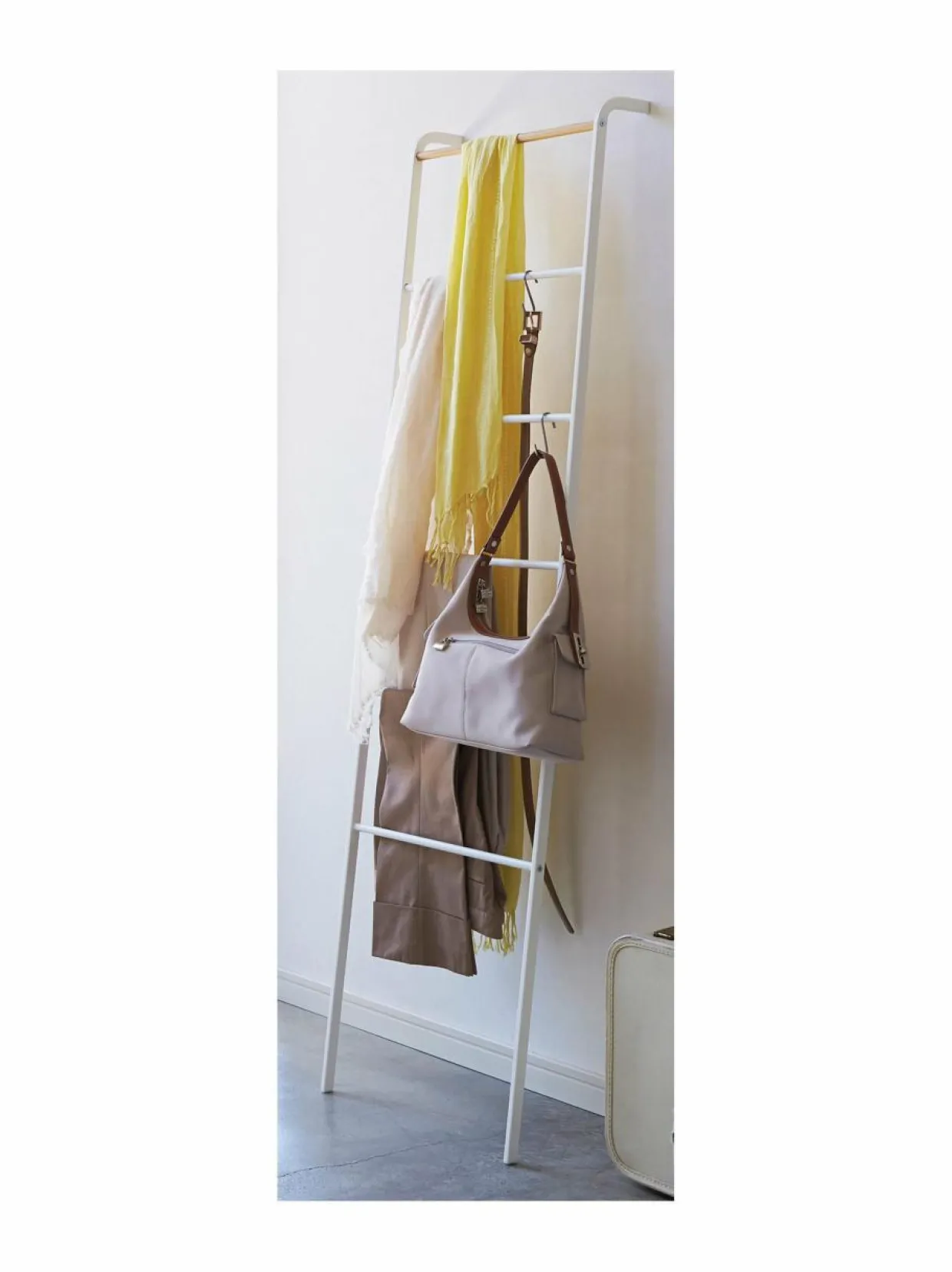 Yamazakin Tower-sarjan tikasmallista vaatetelinettä ei tarvitse kiinnittää seinään ruuveilla tai muilla kiinnikkeillä, vaan se yksinkertaisesti asetetaan nojaamaan seinään. Teline sopii erinomaisesti esimerkiksi huivien tai farkkujen säilytykseen. Teräksestä valmistetun telineen ylin puola on puuta. Tuote on koottava. Suunniteltu Japanissa.
