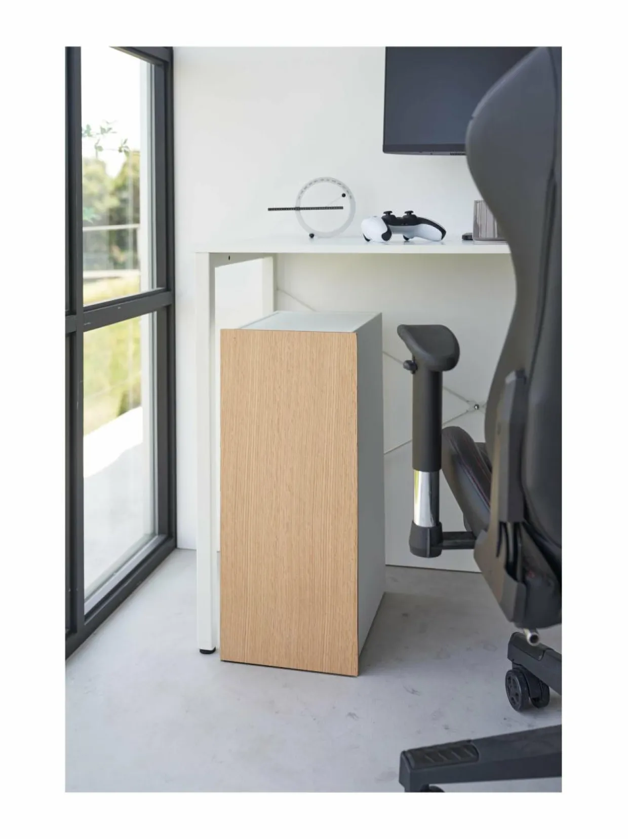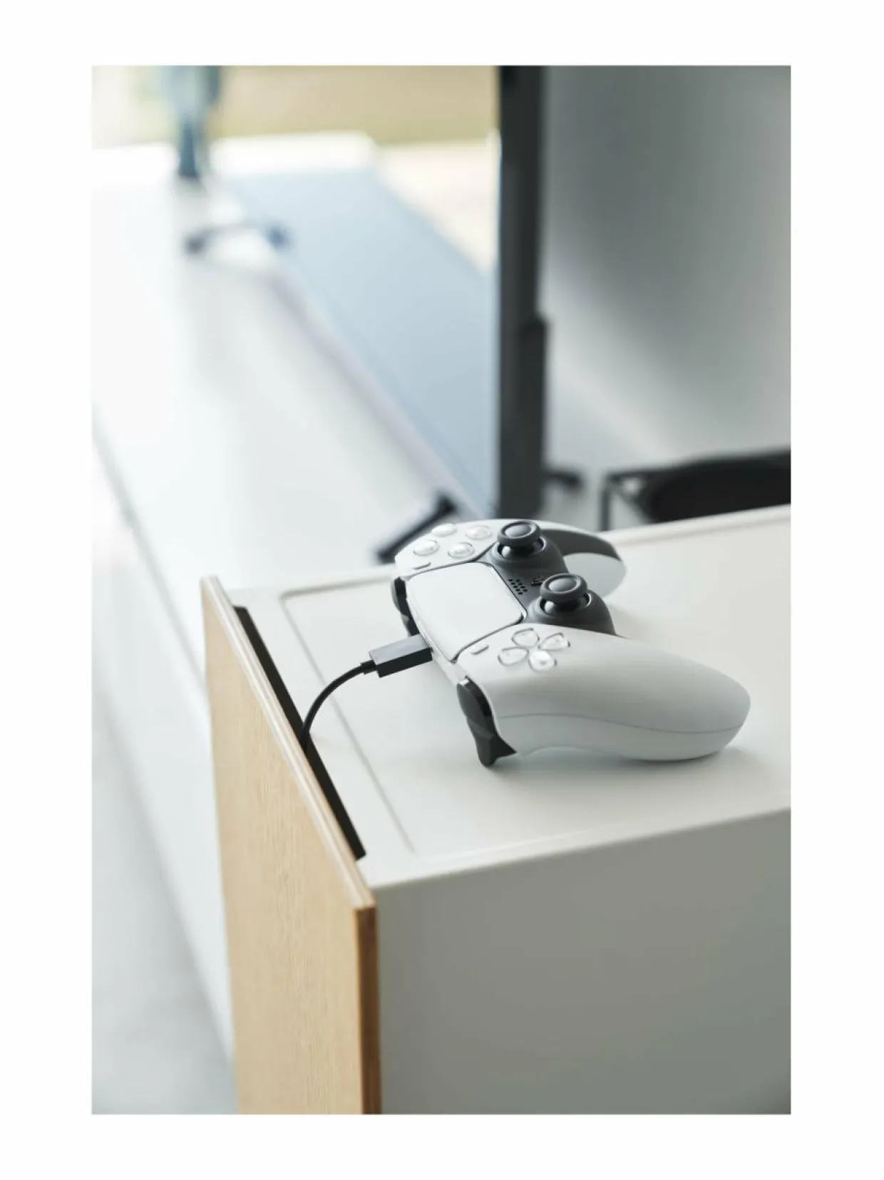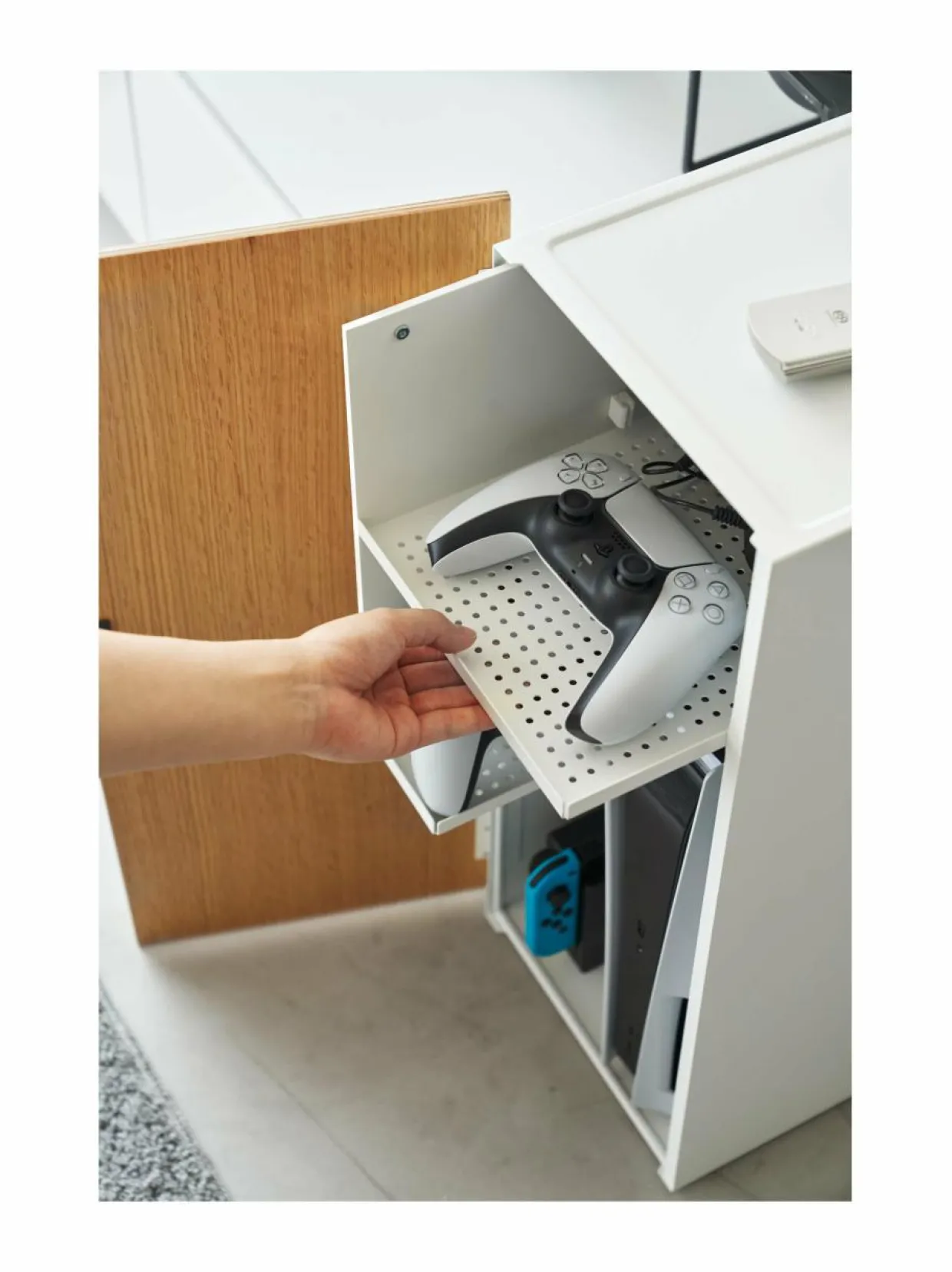 Tower-sarjan pelikonsolikaappi auttaa pitämään laitteet, ohjaimet, kuulokkeet ja muut pelivälineet järjestyksessä. Osittain avonainen takaseinä ehkäisee laitteiden ylikuumenemista, ja puuovi tekee ulkonäöstä tyylikkään. Kaapin sisällä on kaksi ulosvedettävää hyllyä: ylemmän hyllyn kantavuus 1,5 kg ja alemman 1 kg. Suunniteltu Japanissa.