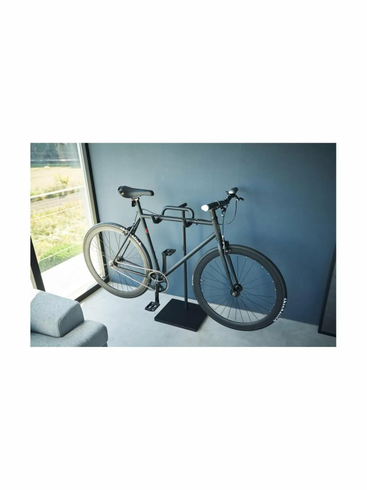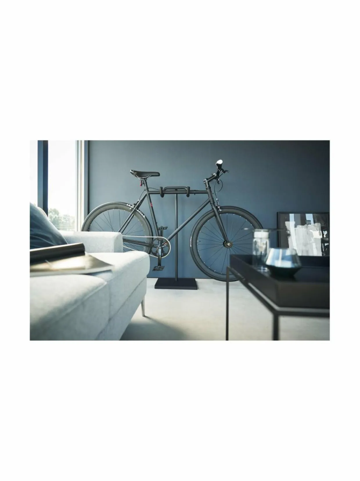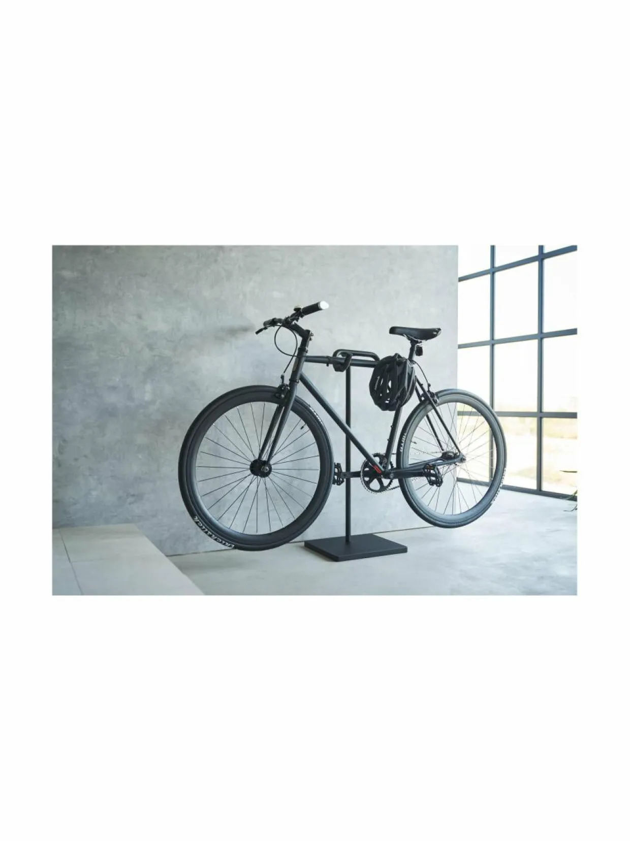 Esittele pyöräsi tyylikkäästi tällä minimalistisella jalustalla. Tämä teline tarjoaa käytännöllisen sisäsäilytysratkaisun polkupyörille. Valmistettu jauhemaalatusta teräksestä. Telineessä on silikonikuori, joka estää naarmuja, ja sen kaareva muotoilu ei vain suojaa pyörää, vaan tarjoaa myös tilaa lisävarusteille, kuten kypärille. Maksimikuorma 12 kg.